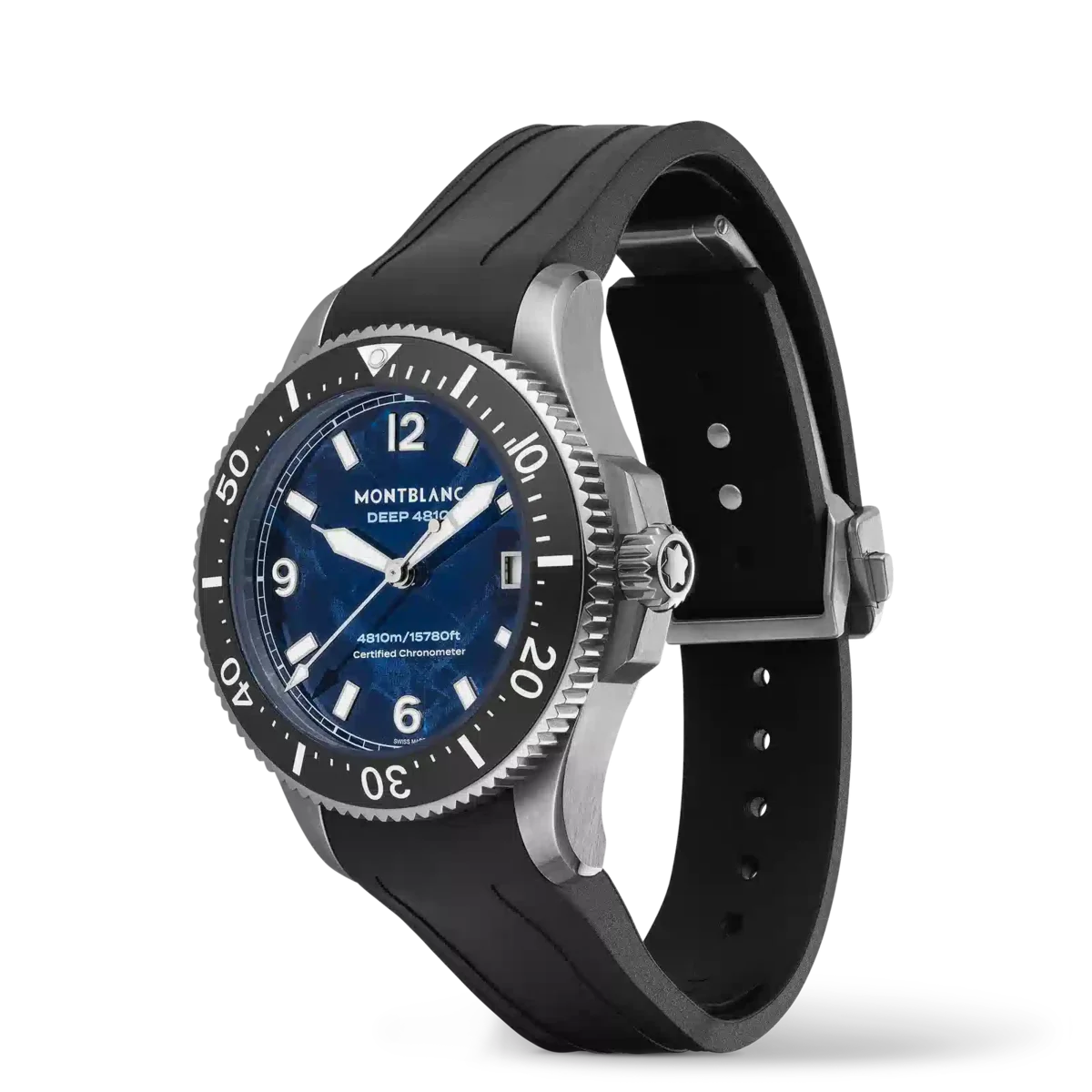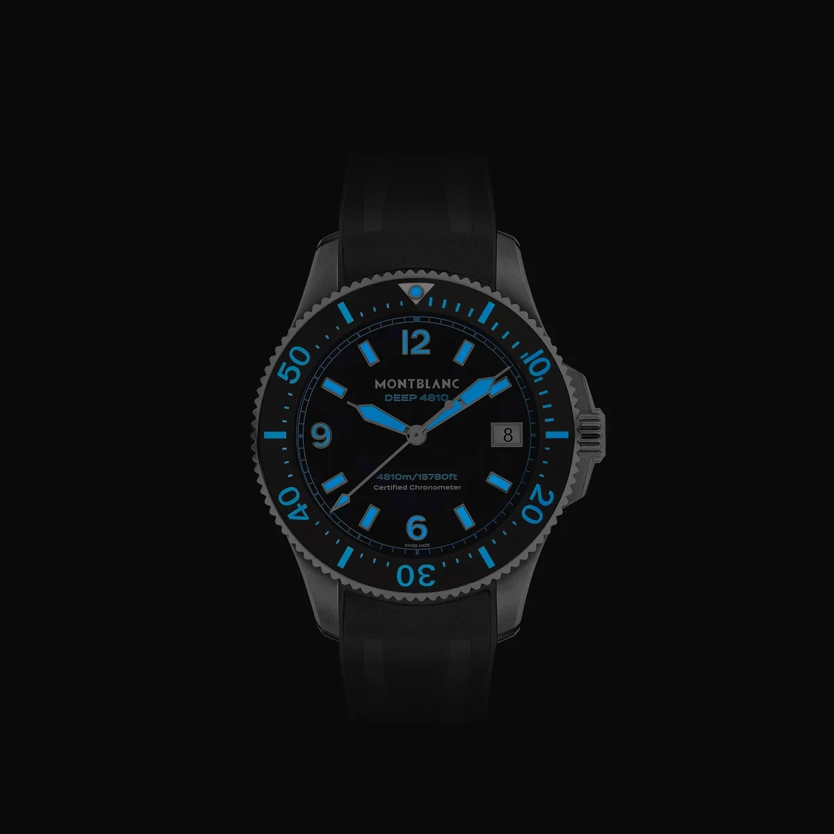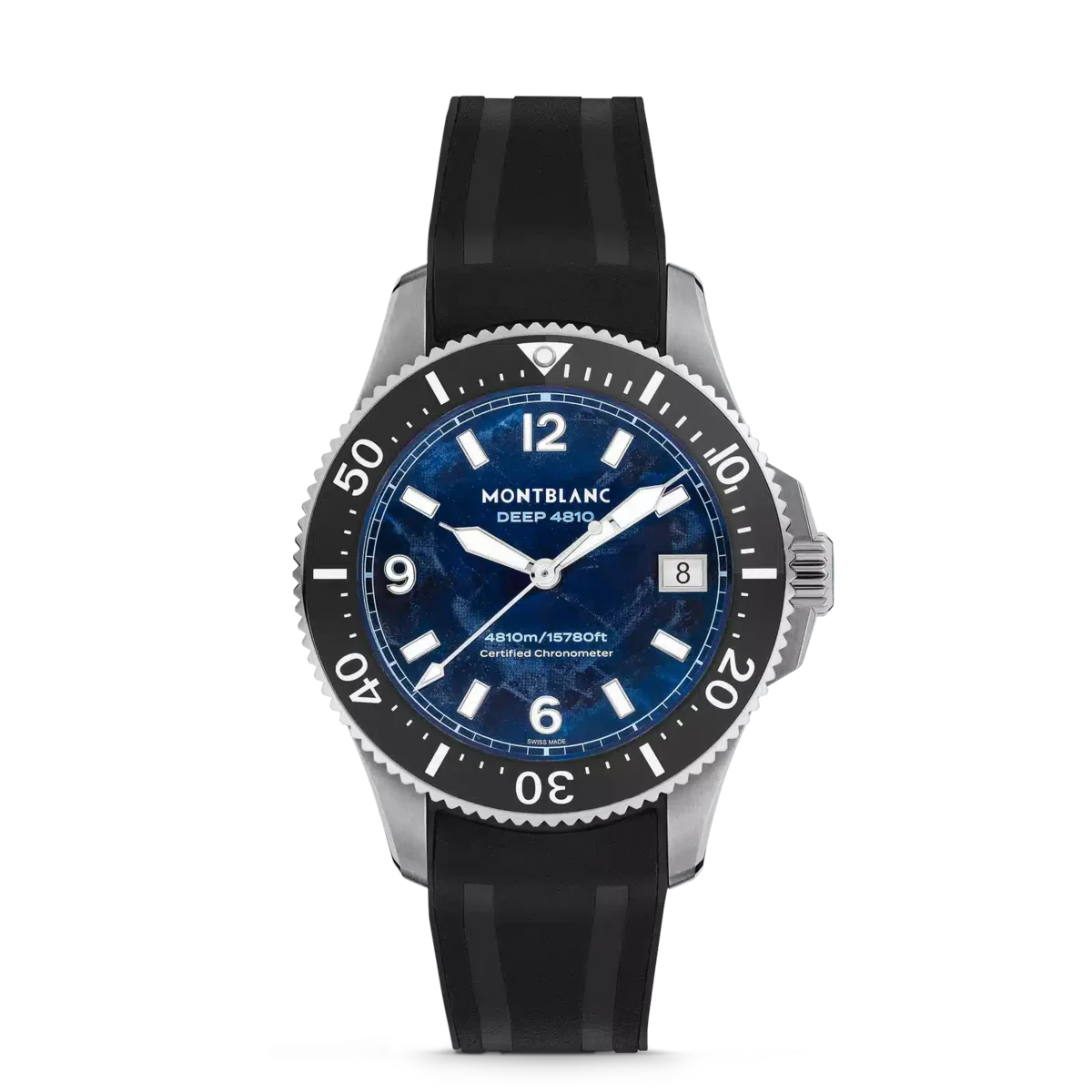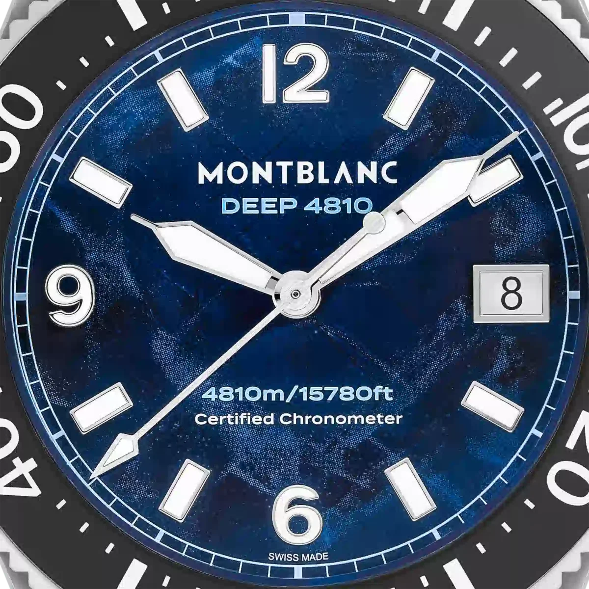 Efter att ha strävat efter de högsta höjderna utforskar Montblanc nu havets universum 4810 meter under havsytan med Montblanc Iced Sea 0 Oxygen Deep 4810. Urtavlan med glaciärmönster är inspirerad av Mer de Glace – Ishavet – den största glaciären i Mont Blanc-massivet. Texturen har åstadkommits med hjälp av en nästan bortglömd gammal teknik som kallas gratté-boisé. Denna dykarklocka har ett 43 mm titanboett som är helt syrefritt med ett skydd som skyddar den skruvade kronan, och en boettbaksida prydd med en 3D-gravyr av den vy som dykare ser när de dyker under isen. Klockan drivs av Montblancs COSC-certifierade automatiska urverk MB 29.29, med cirka fem dagars gångreserv och uppfyller ISO 6425-normen för dykning. Den är vattentät till 4810 meter. Identifikationsnummer MB133268