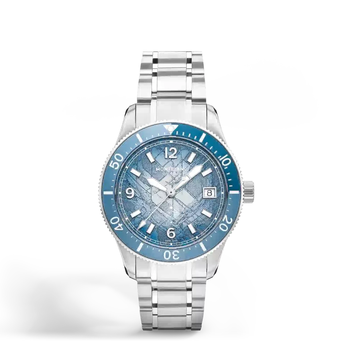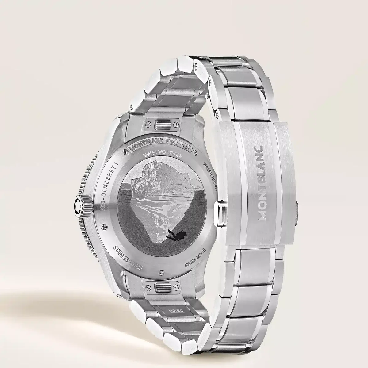 Montblanc Iced Sea Automatic Date 0 Oxygen med blå sfumato-urtavla med glaciärmönster ger intrycket av att man tittar in i djupet av en glaciär. Denna glaciärstruktur, inspirerad av Mer de Glace, har skapats med hjälp av en nästan bortglömd gammal teknik som kallas gratté-boisé. Klockan har ett 38 mm rostfritt stålboett som är helt syrefritt och levereras med en enkelriktad roterbar bezel med tvåfärgad blå anodiserad aluminiuminsats, en 3D-gravyr på boettens baksida och ett utbytbart rostfritt stålarmband med finjusteringssystem. Klockan uppfyller ISO 6425-normen för dykning och har en vattentäthet på 300 meter. Identifikationsnummer MB134022