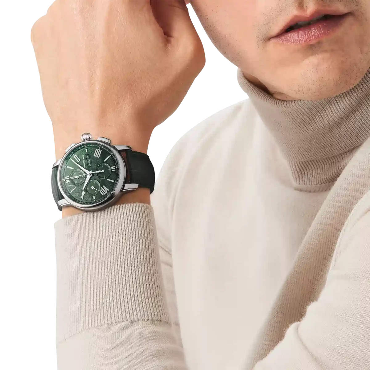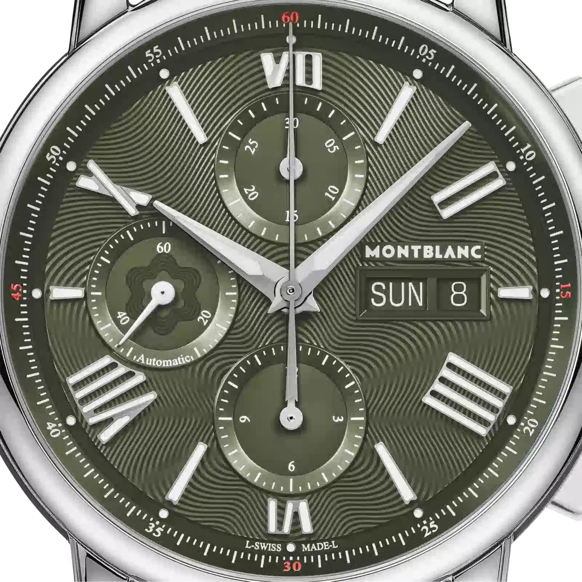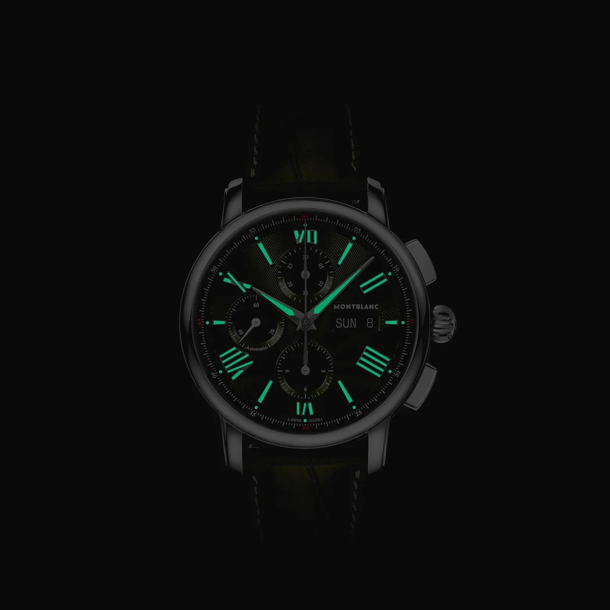 Montblanc Star Legacy Chronograph Day & Date Limited Edition i 800 exemplar är inspirerad av Minervas fickur från slutet av 1800-talet och början av 1900-talet med sina runda, polerade, stenformade boetter och lökformade kronor. Den vackra gröna urtavlan har Montblancs signaturmönster med exploderande stjärnor samt rodiumbelagda svärdformade visare och siffror. Den drivs av det automatiska urverket MB 25.07 som inkluderar en kronograf, veckodag och datum. Klockan är också försedd med ett utbytbart grönt kalvskinnsarmband med alligatorprint och ecru-sömmar.