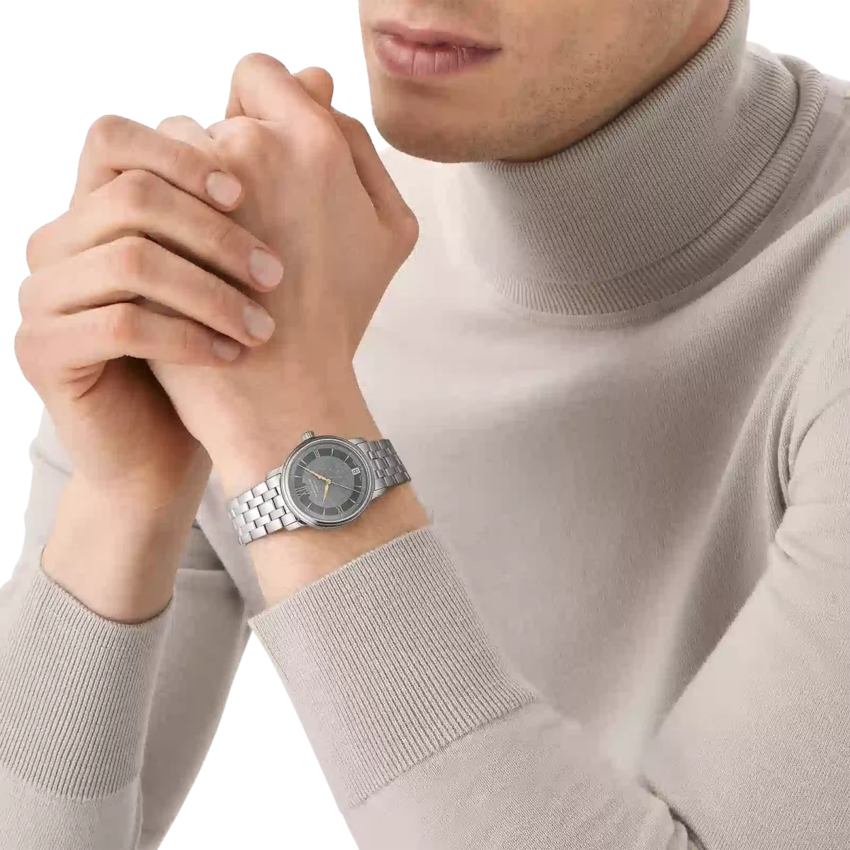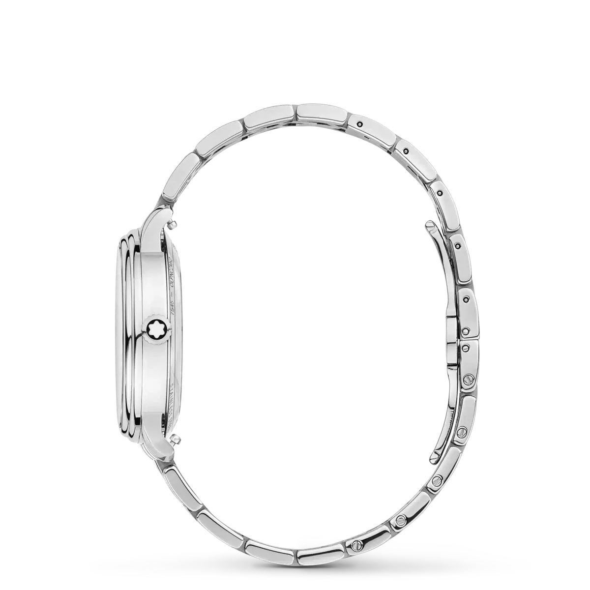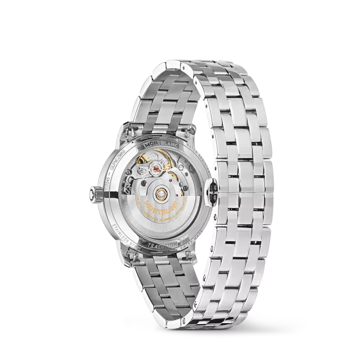 Montblanc Tradition Automatic Date har ett 32 mm rostfritt stålboett med raka horn och en dubbelformad bezel. Klockan har en grå urtavla som visar topografin på Mont Blanc med roséguldfärgade romerska siffror och en framträdande romersk ”XII”. De svärdformade tim- och minutvisarna, sekundvisaren och kronan med Montblanc-emblemet samt det utbytbara armbandet i rostfritt stål fulländar dess moderna, eleganta utseende.