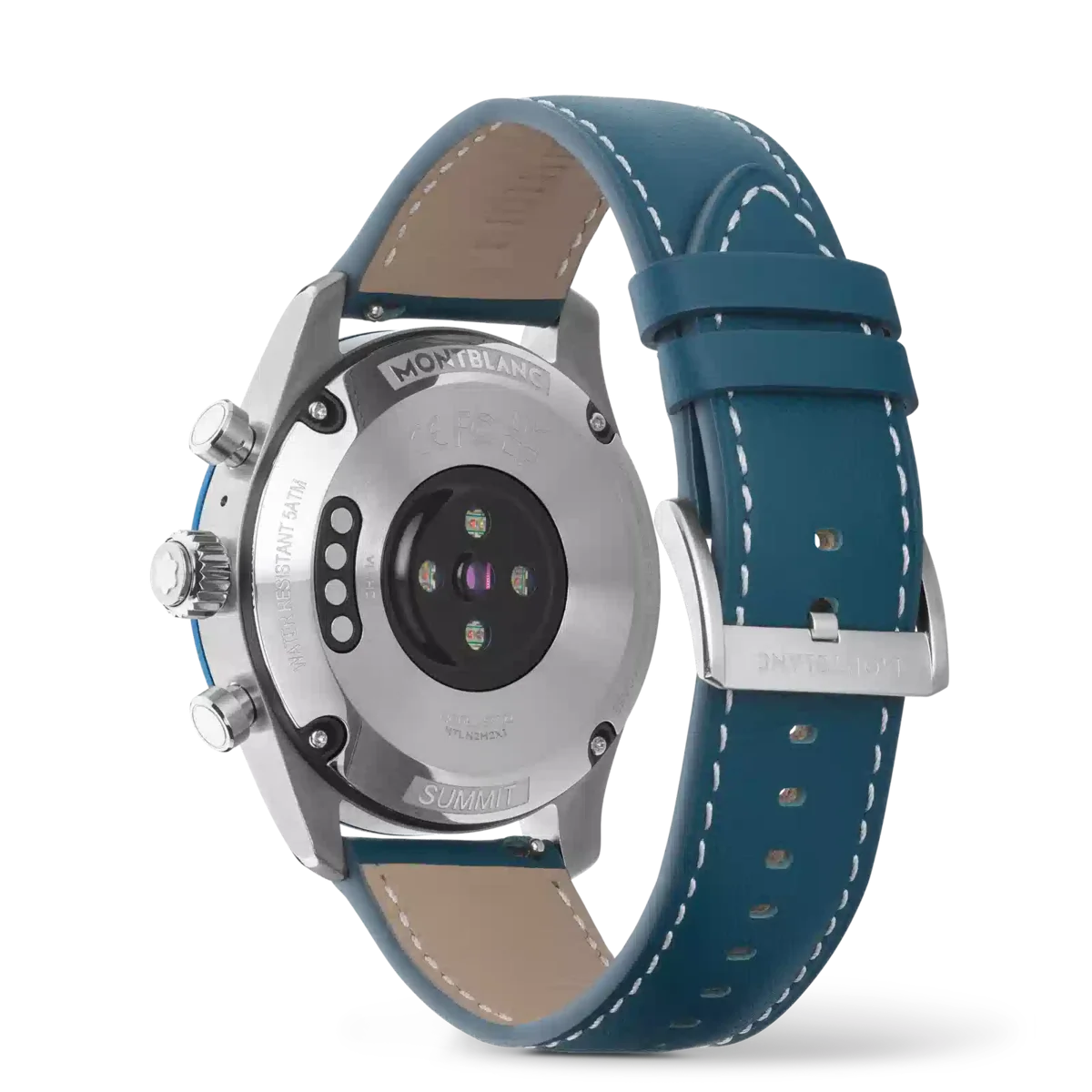 Montblanc Summit 3 är en smart lyxartikel för din handled. Denna smartwatch har en vacker design som förkroppsligar Maison-husets arv av fin schweizisk klocktillverkning och dess erfarenhet av högkvalitativa material. Även om denna klocka vid första anblicken lätt kan misstas för en klassisk analog klocka, är den utrustad med avancerad smart teknik. Med förbättrad batteritid, flera sensorer för hälsoövervakning, en överlägsen fitnessupplevelse, förbättrad prestanda och många fantastiska appar, stöder Summit 3 dig i alla aspekter av ditt liv. Du behöver inte längre välja mellan teknik och elegans. Identifikationsnummer MB131800 Processor Qualcomm Snapdragon Wear 4100+ Skärm 1,28 tum fullcirkel AMOLED-skärm 416 x 416 upplösning