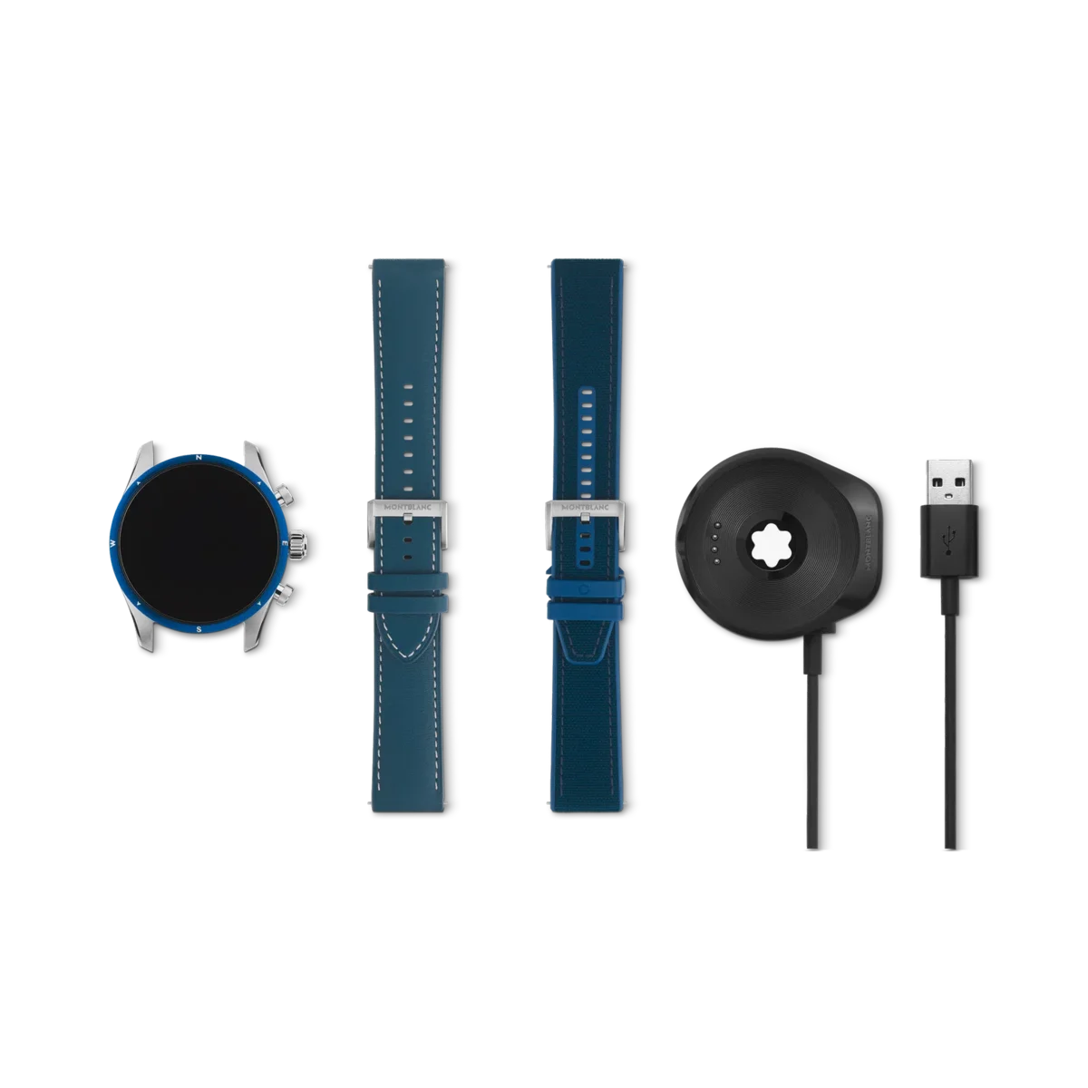 Kompanjonapp för smartphone: Montblanc Summit. Finns på App Store och Play Store. Innehåll i förpackningen Innehåll i förpackningen Summit 3 med sportarmband i gummi, extra armband i kalvskinn, laddningsstation, USB-kabel, säkerhetsmanual och snabbstartsguide.
