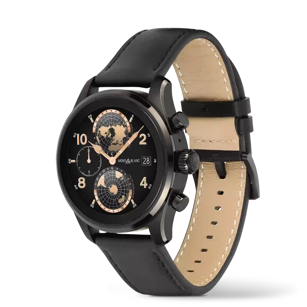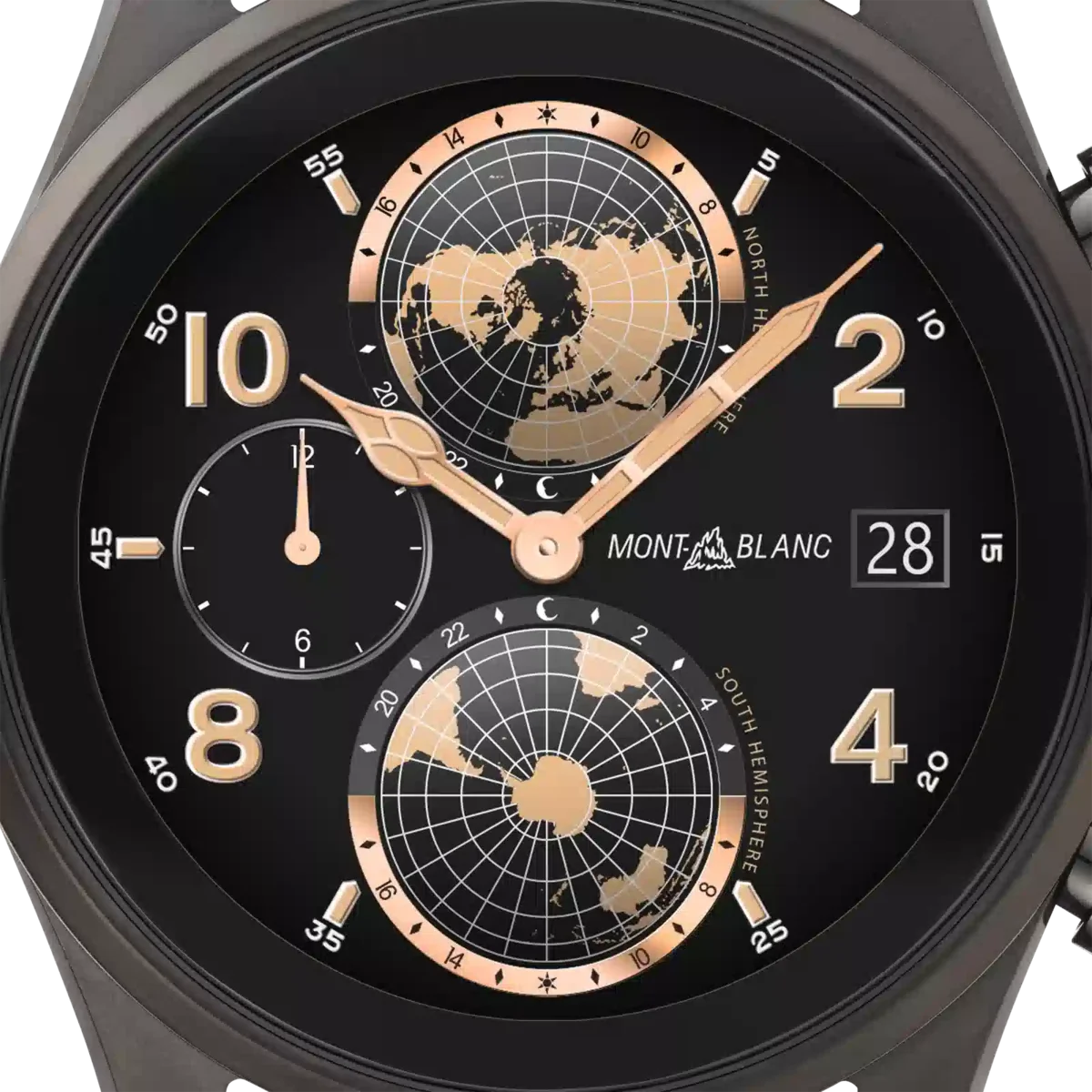 Montblanc Summit 3 är en smart lyxartikel för din handled. Denna smartwatch har en vacker design som förkroppsligar Maison-husets arv av fin schweizisk klocktillverkning och dess erfarenhet av högkvalitativa material. Även om denna klocka vid första anblicken lätt kan misstas för en klassisk analog klocka, är den utrustad med avancerad smart teknik. Med förbättrad batteritid, flera sensorer för hälsoövervakning, en överlägsen fitnessupplevelse, förbättrad prestanda och många fantastiska appar stöder Summit 3 dig i alla aspekter av ditt liv. Du behöver inte längre välja mellan teknik och elegans. Identifikationsnummer MB129267 Processor Qualcomm Snapdragon Wear 4100+ Skärm 1,28 tum fullcirkel AMOLED-skärm 416 x 416 upplösning