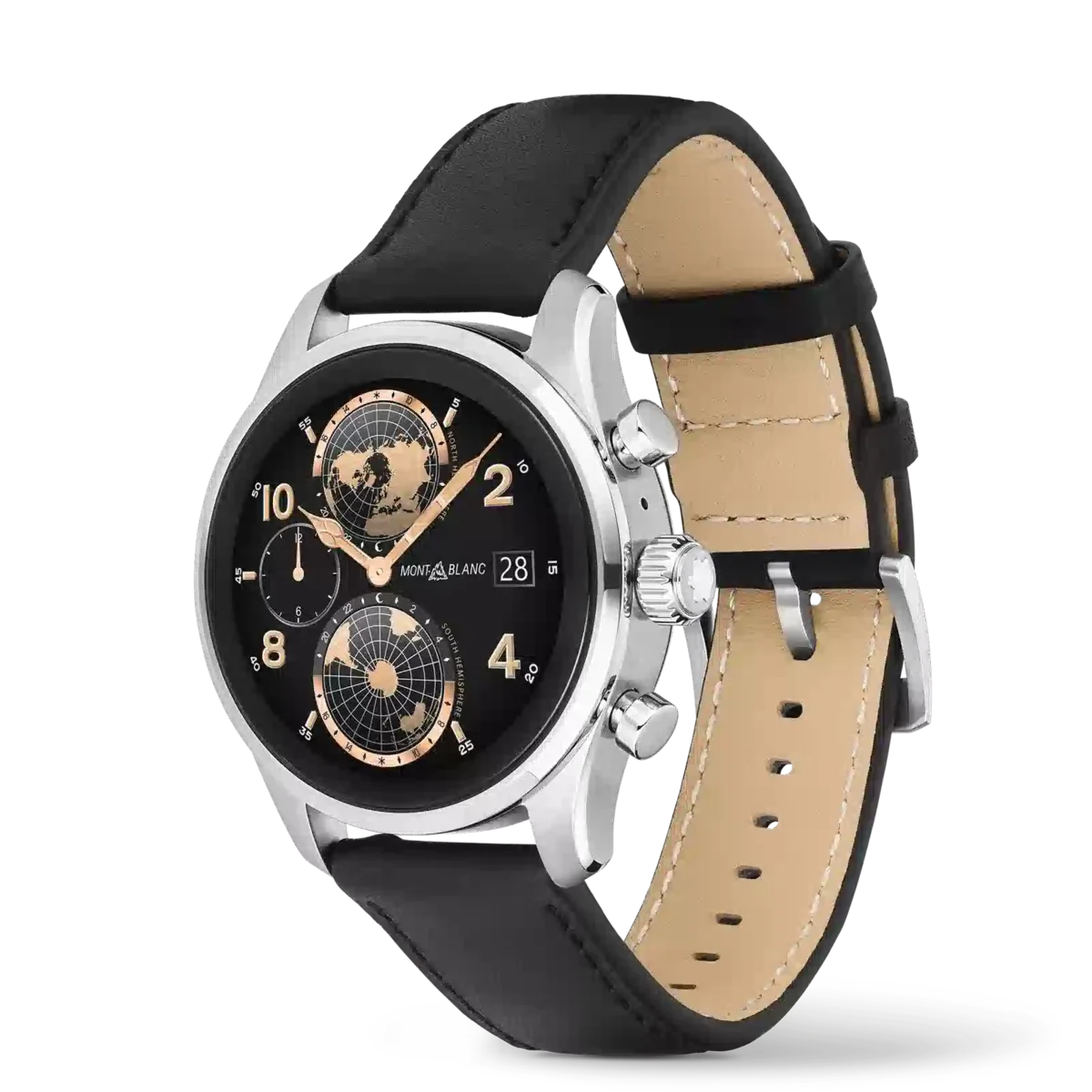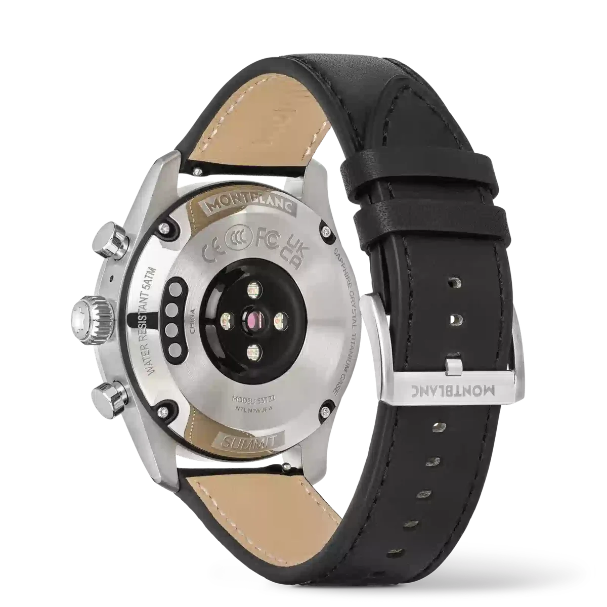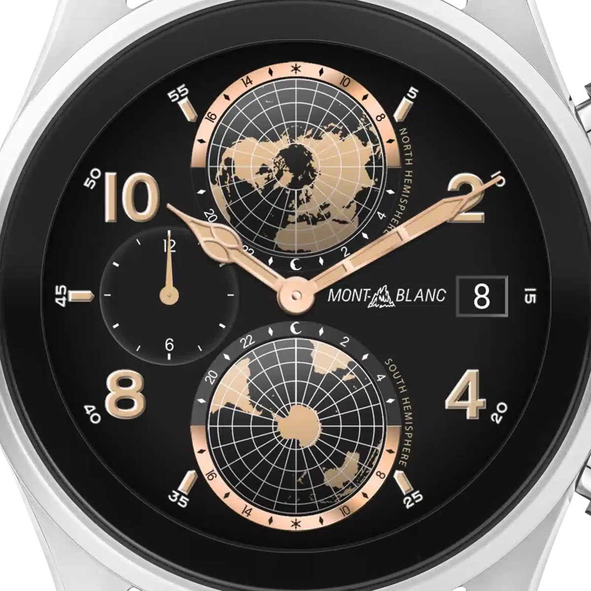 Montblanc Summit 3 är en smart lyxartikel för din handled. Denna smartklocka har en vacker design som förkroppsligar Maison’s arv av fin schweizisk klocktillverkning och dess erfarenhet av högkvalitativa material. Även om denna klocka vid första anblicken lätt kan misstas för en klassisk analog klocka, är den utrustad med avancerad smart teknik. Med förbättrad batteritid, flera sensorer för hälsoövervakning, en överlägsen fitnessupplevelse, förbättrad prestanda och många fantastiska appar, stöder Summit 3 dig i alla aspekter av ditt liv. Du behöver inte längre välja mellan teknik och elegans. Identifikationsnummer MB129268 Processor Qualcomm Snapdragon Wear 4100+ Skärm 1,28 tum fullcirkel AMOLED-skärm 416 x 416 upplösning
