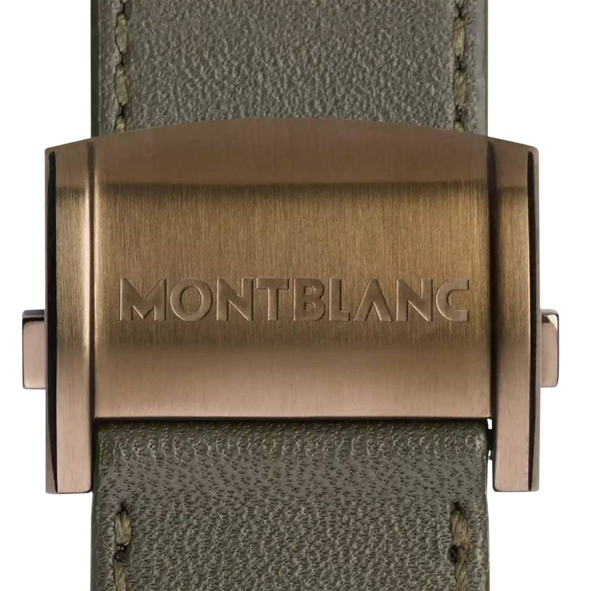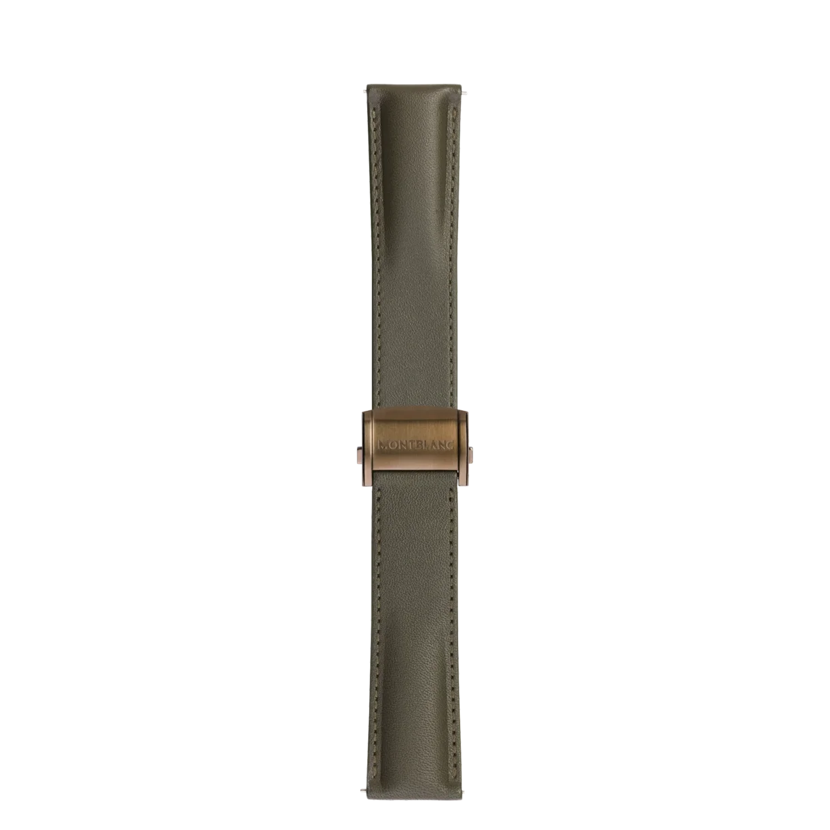 22 mm khakifärgat kalvskinnsarmband med justerbar bronsfärgad viklås i rostfritt stål. Kompatibel med alla Montblanc Summit-smartklockor.
