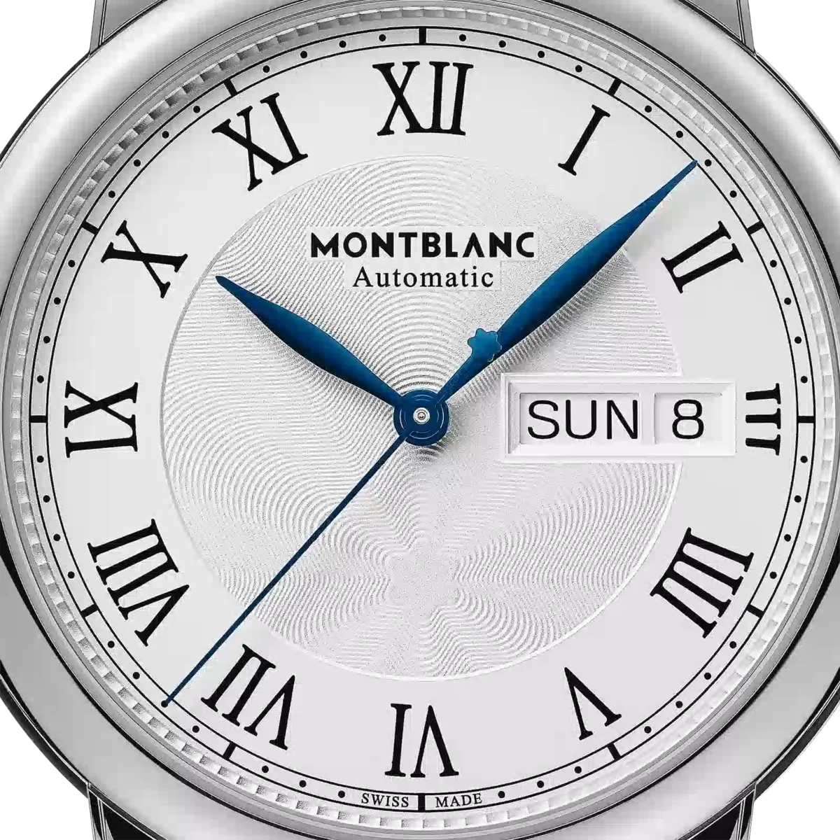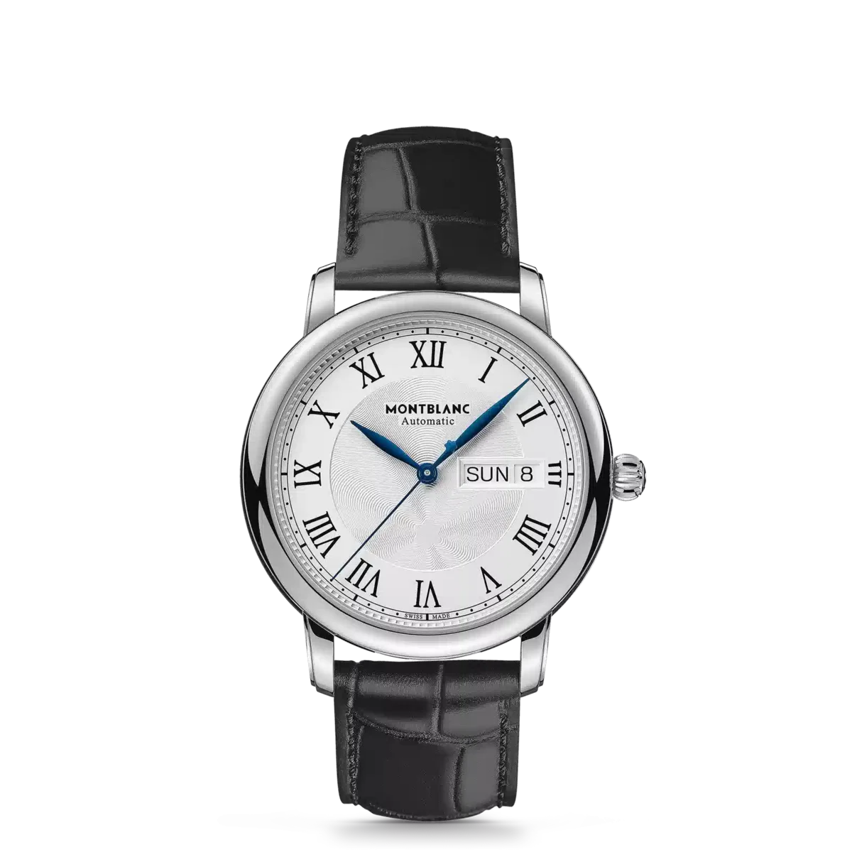Montblanc Star Legacy-kollektionen är inspirerad av Minervas arv och företagets fickur som tillverkades under slutet av 1800-talet och början av 1900-talet.I linje med produktlinjens designkoder har Montblanc Star Legacy Automatic Day & Date en raffinerad silvervit urtavla med Montblancs exploderande stjärnmönster, arabiska siffror, bladformade visare, ett ”filet sauté”-mönster och en järnvägsspåret. Klockan är utrustad med det automatiska kaliber MB 24.28 och har timmar, minuter och sekunder i mitten samt dag och datum i en öppning vid klockan tre. Den levereras i ett 39 mm rostfritt stålboett och är försedd med ett svart kalvskinnsarmband med alligatorprint. Identifikationsnummer MB128686