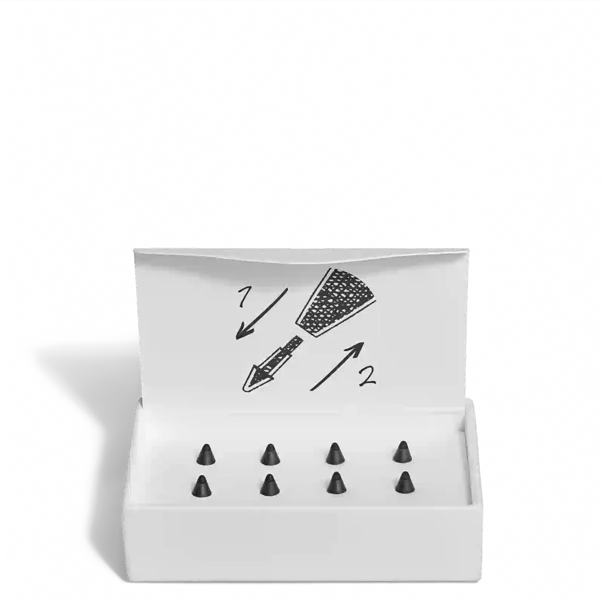 Den släta spetsen glider lätt och ger samma känsla som en penna på polerat, högkvalitativt papper. Den är utformad för flytande, snabbt skrivande och reagerar lätt på handen, vilket gör den idealisk för att fånga upp idéer när de dyker upp. Ett naturligt val för dig som tänker – och skriver – på språng. Förpackning med 8 ersättningsspetsar.