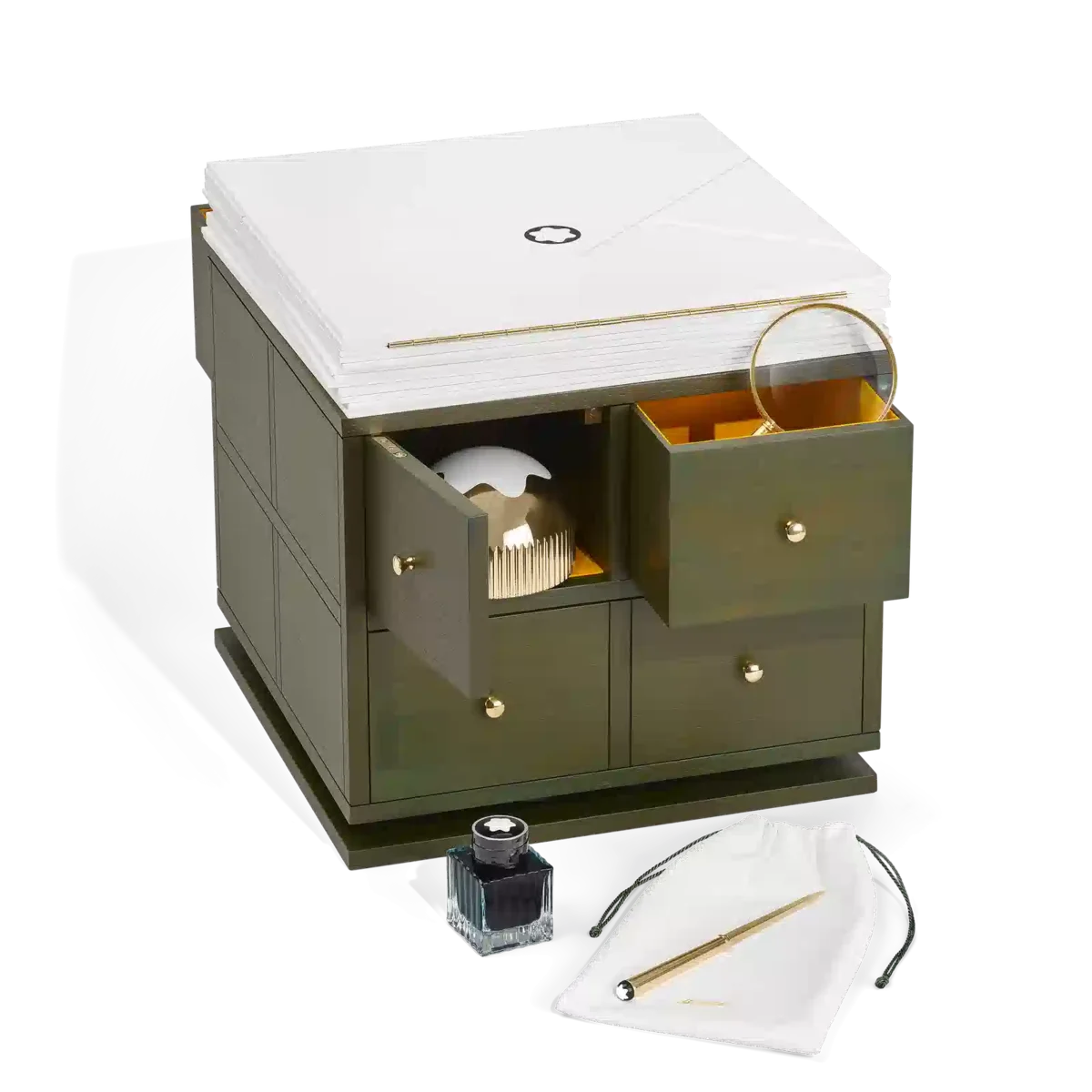 Montblanc presenterar Happy Holidays Set 2025, en hyllning till den bestående konsten att skriva brev. Setet är begränsat till endast 100 exemplar världen över och är både ett samlarobjekt och en meningsfull gåva som påminner om vikten av personlig uttrycksfullhet och mänskliga relationer.Setet förvaras i en fint utformad låda vars design påminner om en författares kuriosa-skåp, där kreativa personer kunde förvara minnen som de samlat under sina resor. Bakom var och en av de åtta lådorna utspelar sig en resa genom Mont Blancs snöiga toppar och Maisonens historia. De noggrant utvalda föremålen tjänar till att väcka kreativitet, erbjuda säsongens komfort och stödja resor, medan ett övre fack i form av ett kuvert avslöjar en exklusiv Montblanc-reservoarpenna och julkort. Upplevelsen av att packa upp boxen återspeglar själva skrivandets anda: genomtänkt, personlig och avsiktlig, förverkligad i en vintageinspirerad färgpalett i grönt och guld.