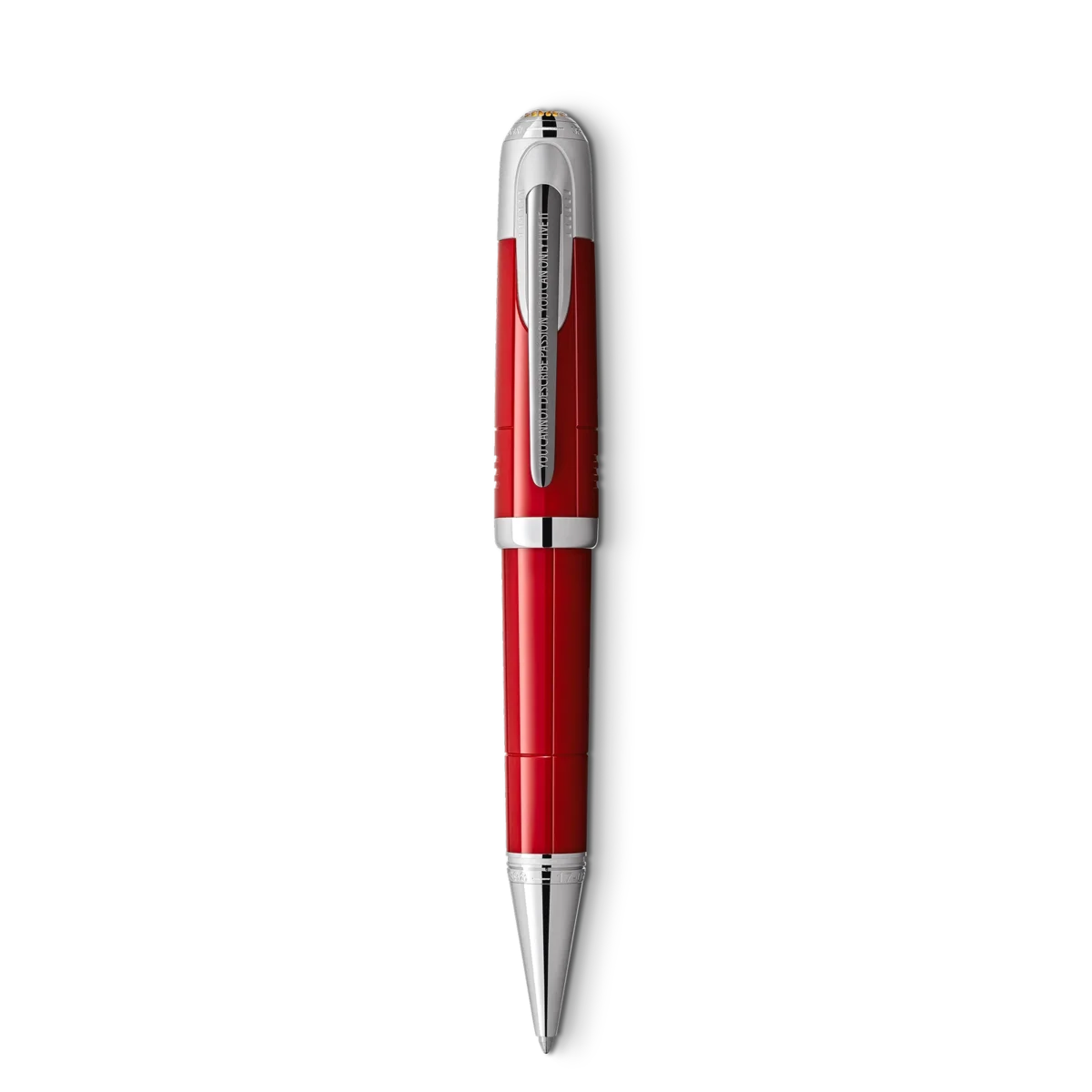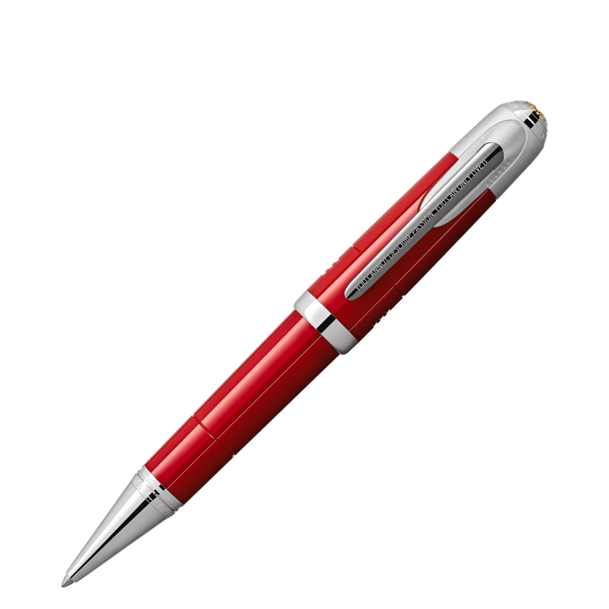 2021 hyllar Montblanc den visionäre Enzo Ferrari: både racerförare och entreprenör. Han grundade den legendariska Scuderia Ferrari och byggde upp ett globalt bilimperium vars namn har blivit synonymt med superb kvalitet och passion för hastighet. Tillverkad av röd ädelharts symboliserar denna utgåva början på Enzo Ferraris passion för motorsport. Färgen är inspirerad av ”Rosso 70 Anni”, en speciell röd färg som representerar olika ikoniska röda nyanser genom åren och som först utvecklades för att fira Scuderia Ferraris 70-årsdag. Kapsylens topp pryds av ett Montblanc-emblem inbäddat i ett metallgaller på en gul yta, som en hyllning till Ferraris födelseort. Modena, Italien. Den stegrande hästen, det berömda emblemet för Ferrari-bilar, är avbildat på baksidan av locket. Metallklämman är prydd med ett berömt citat av Enzo: ”Du kan inte beskriva passion, du kan bara leva den.” Konen visar två viktiga datum i Enzo Ferraris tidiga karriär. Identifikationsnummer MB132146 Fysisk vikt 53,04 g Mått 14,3 mm * 17,5 mm