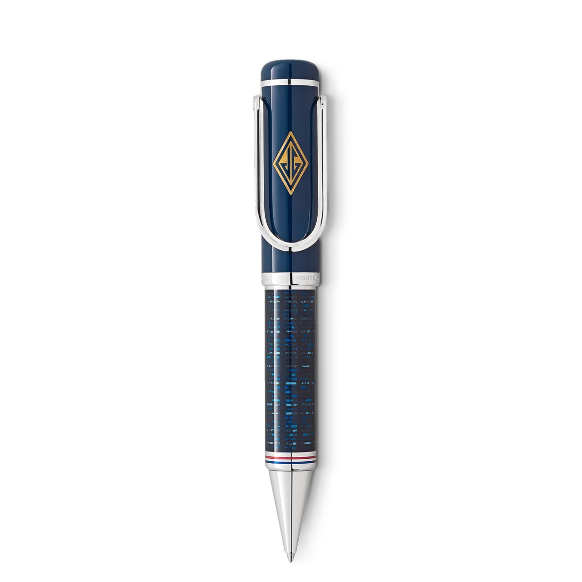 Vissa romaner går till litteraturhistorien och blir samtidigt symboler för en hel epok. F. Scott Fitzgeralds ”The Great Gatsby” är en sådan pärla i modern amerikansk litteratur. Romanen, som publicerades 1925, målar upp en fascinerande bild av jazzåldern och de glada tjugotalet, en tid präglad av oöverträffad rikedom och självförhävelse. Det pulserande New York City, de opulenta herrgårdarna på Long Island och de glittrande societetsfesterna utgör bakgrunden till berättelsen om Jay Gatsby, en mystisk miljonär som inte skyr några medel för att återvinna sin förlorade ungdoms kärlek, Daisy Buchanan.Det glittrande New York under Gatsby-eran, där de glänsande art déco-skyskraporna mot den blå kvällshimlen inspirerade designen av Great Characters Homage to The Great Gatsby Special Edition. Skapad som en hyllning till ett tidigt Montblanc-skrivinstrument från art déco-eran, verkar ytan på pennkroppen, som är tillverkad med en speciell teknik, reflektera den blomstrande stadens upplysta höghusfasader på natten. Det är ingen fiktiv anordning, utan lyser faktiskt som det gröna ljuset på bryggan vid Daisys hus i ”The Great Gatsby”. Det fluorescerande Montblanc-emblemet på lockets ovansida fångar upp och lagrar ljus under dagen, så att det lyser i mörkret. Pengarnas uppenbara makt symboliseras i denna upplaga av den platinabelagda klämman som har formen av en pengaklämma. Dess rundade öppning pryds av Jay Gatsbys initialer i form av ett rombformat, guldbelagt art déco-monogram. Myten om den amerikanska drömmen refereras till av fina ringar i amerikanska flaggans färger som omger lockringen. Identifikationsnummer MB130659 Fysisk vikt 59,99 g Mått 141,6 mm * 16,8 mm