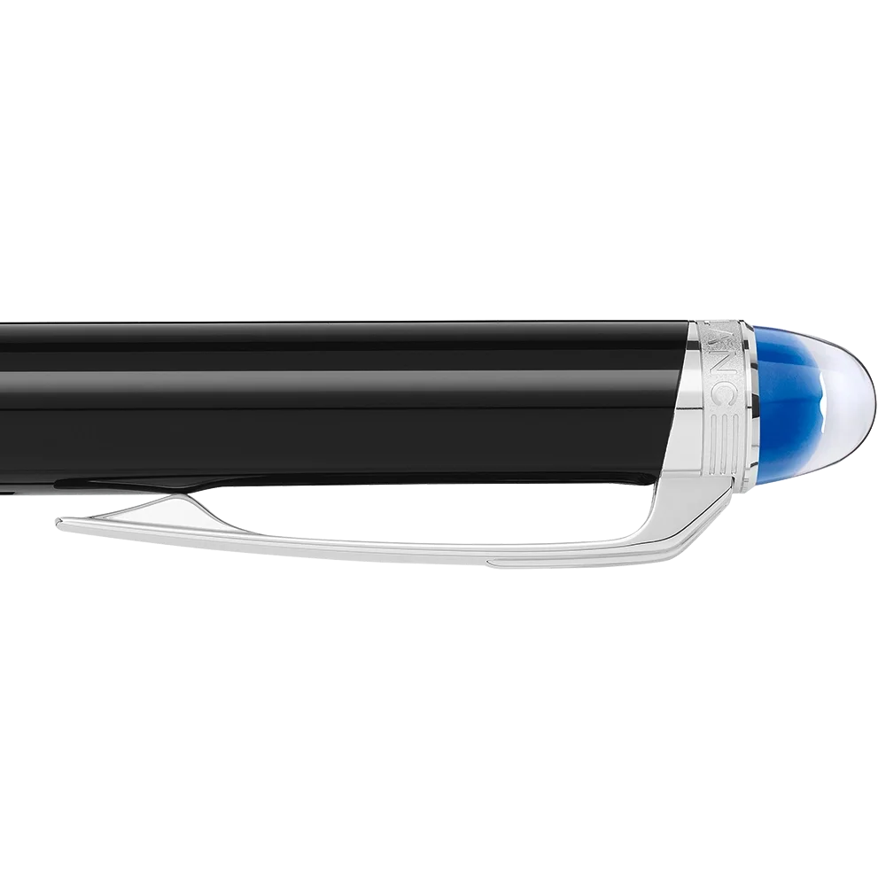 Den nya StarWalker handlar om att vandra bland stjärnorna. Den handlar om att utforska kosmos och främmande galaxer. Den handlar om att vara en del av ett av mänsklighetens mest mystiska och mäktiga äventyr: utforskningen av rymden. Kollektionens nya design hyllar den oerhörda känslan som alla rymdresenärer beskriver när de ser vår blå planet sväva i rymdens oändliga vidsträckthet. Den unika StarWalker-emblemetekniken har en blå genomskinlig kupol under Montblanc-emblemet som påminner om jorden som dyker upp ovanför månens horisont. StarWalker Doué har en platinabelagd framdel och beslag samt en svart pennkropp av ädelharts. Identifikationsnummer MB132511 Fysisk vikt 44,12 g Mått 134,5 mm * 13,1 mm