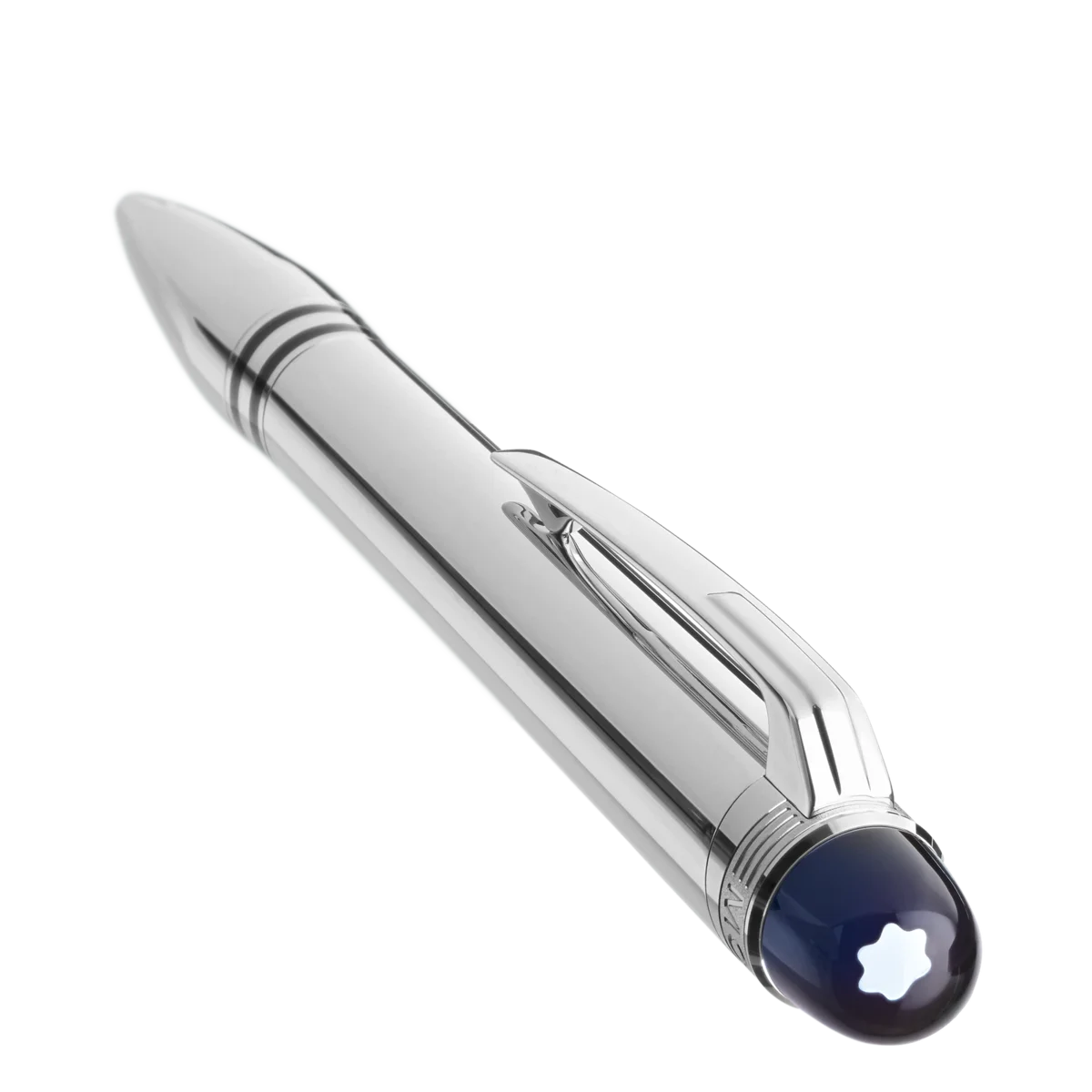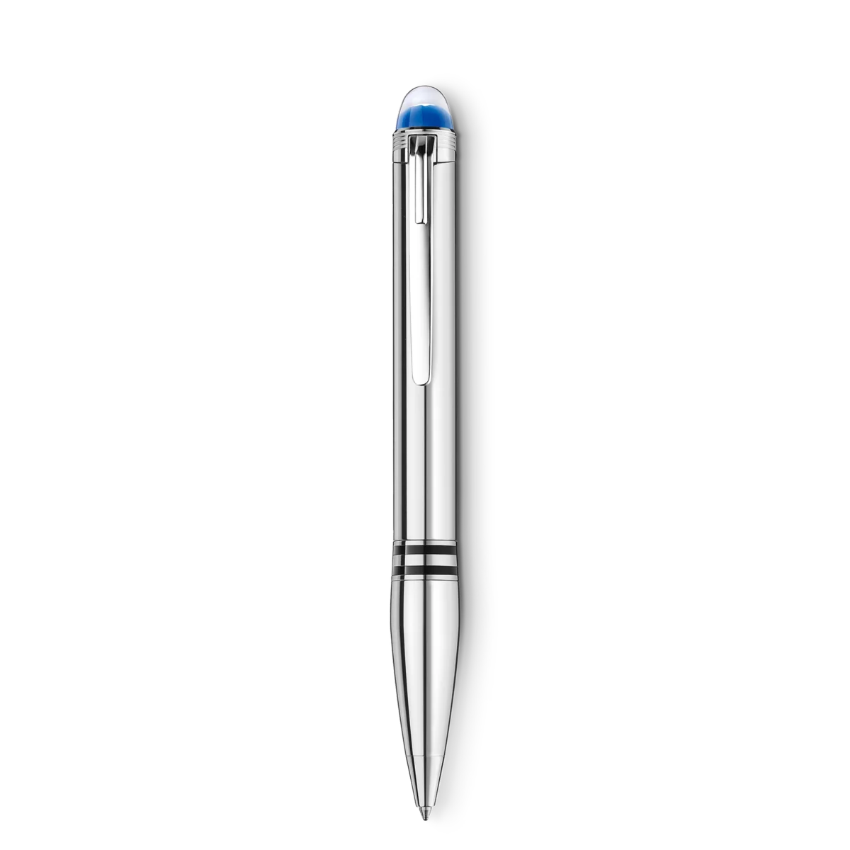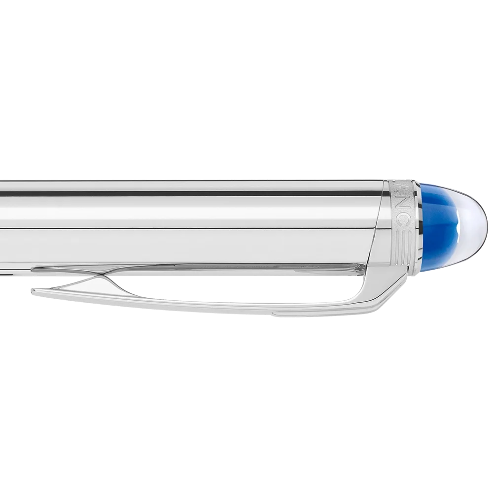 Den nya StarWalker handlar om att vandra bland stjärnorna. Den handlar om att utforska kosmos och främmande galaxer. Den handlar om att vara en del av ett av mänsklighetens mest mystiska och mäktiga äventyr: utforskningen av rymden. Kollektionens nya design hyllar den oerhörda känslan som alla rymdresenärer beskriver när de ser vår blå planet sväva i rymdens oändliga vidsträckthet. Den unika StarWalker-emblemetekniken har en blå genomskinlig kupol under Montblanc-emblemet som påminner om jorden som dyker upp ovanför månens horisont. StarWalker Metal har en platinabelagd pennkropp och detaljer. Identifikationsnummer MB132513 Fysisk vikt 57,88 g Mått 134,5 mm * 13,1 mm