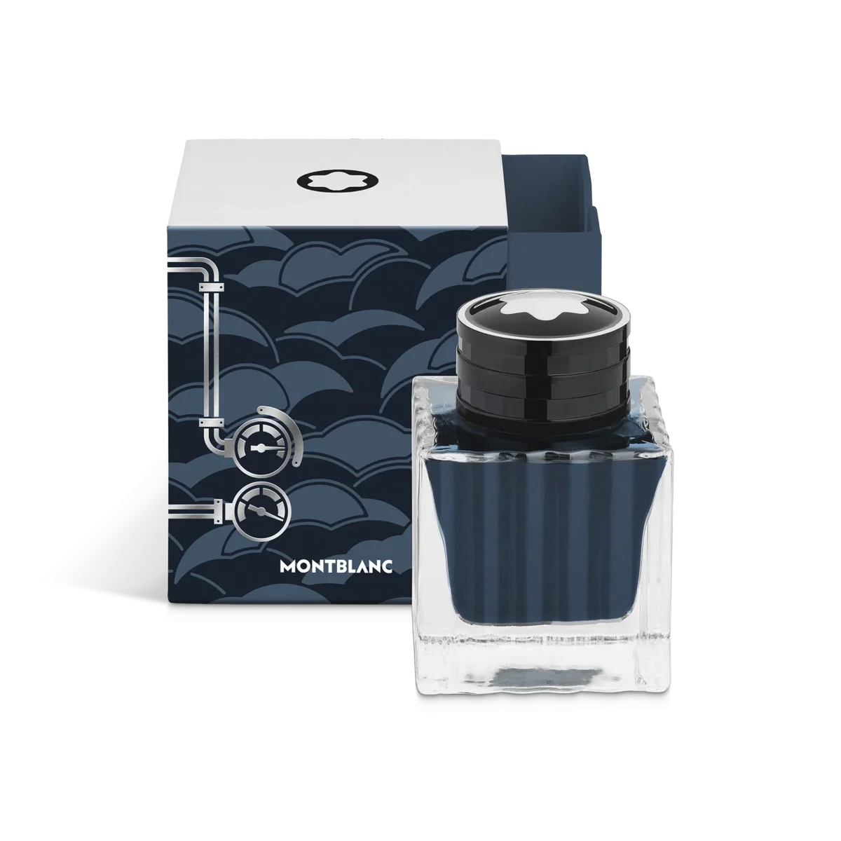 Montblanc bläckflaska, Meisterstück Around the World in 80 Days, Coal Blue – 50 ml Montblancs specialutgåvor av bläckflaskor levereras i fyrkantiga förpackningar som återspeglar varje kollektions koncept och tema, vilket gör dem till värdefulla samlarobjekt för Montblanc-entusiaster. W362