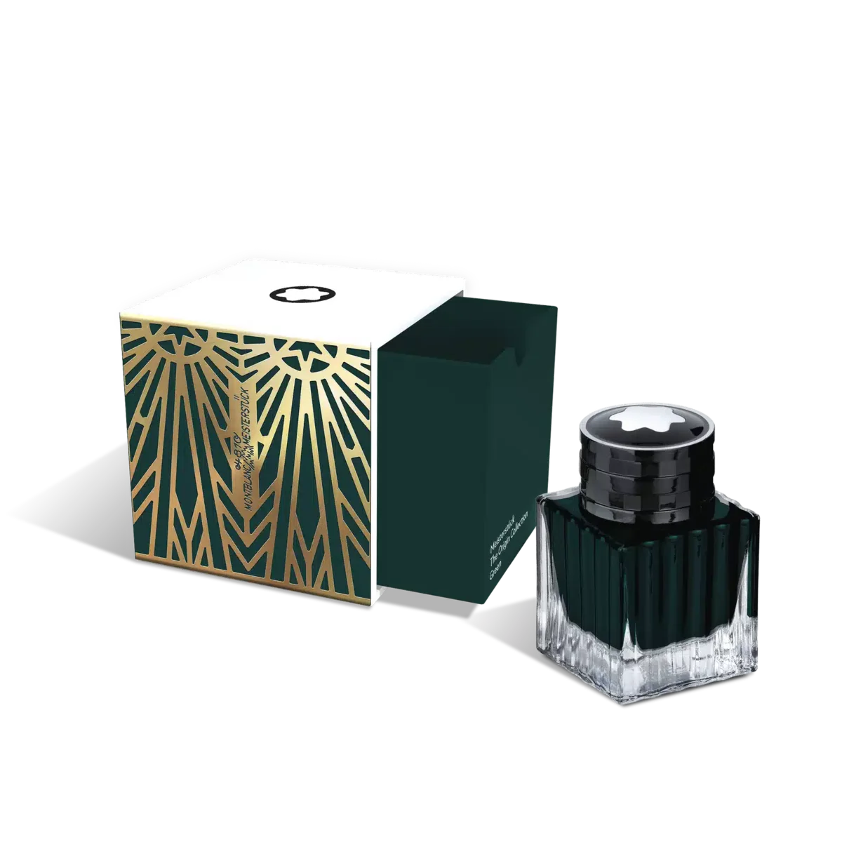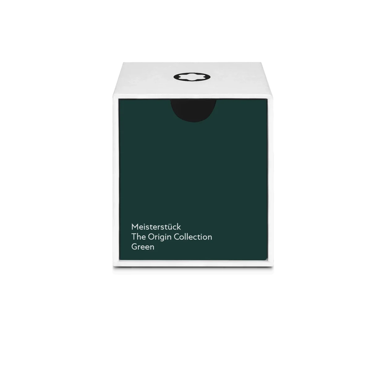 Montblanc Special Edition-bläckflaskor levereras i fyrkantiga förpackningar som återspeglar koncepten och teman för varje kollektion, vilket gör dem till värdefulla samlarobjekt för Montblanc-entusiaster. För att fira Meisterstücks 100-årsjubileum är färgen på bläcket The Origin Green inspirerad av några av de tidiga färgade Meisterstück-skrivinstrumenten från 1920-talet.