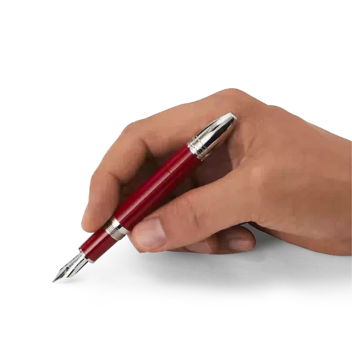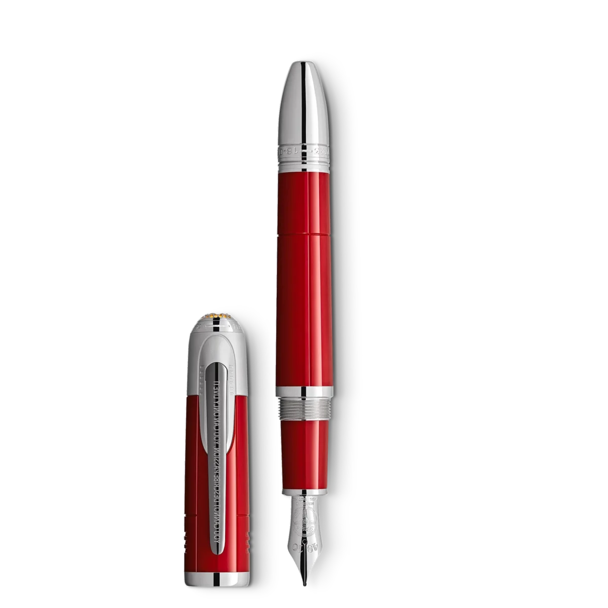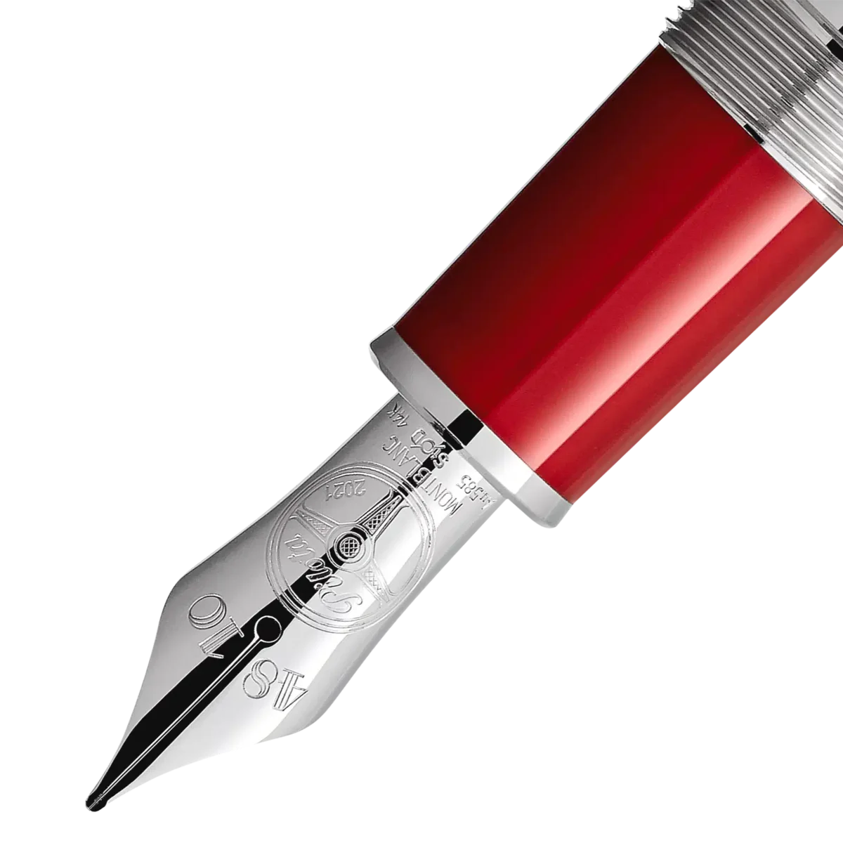 2021 hyllar Montblanc den visionäre Enzo Ferrari: både racerförare och entreprenör. Han grundade den legendariska Scuderia Ferrari och byggde upp ett globalt bilimperium vars namn har blivit synonymt med superb kvalitet och passion för hastighet. Tillverkad av röd ädelharts symboliserar denna utgåva början på Enzo Ferraris passion för motorsport. Färgen är inspirerad av ”Rosso 70 Anni”, en speciell röd färg som representerar olika ikoniska röda nyanser genom åren och som först utvecklades för att fira Scuderia Ferraris 70-årsdag. Kapsylens topp pryds av ett Montblanc-emblem inbäddat i ett metallgaller på en gul yta, som en hyllning till Ferraris födelseort. Modena, Italien. Den stegrande hästen, det berömda emblemet för Ferrari-bilar, är avbildat på baksidan av locket. Metallklämman är prydd med ett berömt citat av Enzo: ”Du kan inte beskriva passion, du kan bara leva den.” Konen visar två viktiga datum i Enzo Ferraris tidiga karriär. Den handgjorda pennspetsen i massivt guld Au 585/14K är präglad med en bild av en ”Ferrari 250 GTO”-ratt och ett av Enzos smeknamn – ”Pilota”.