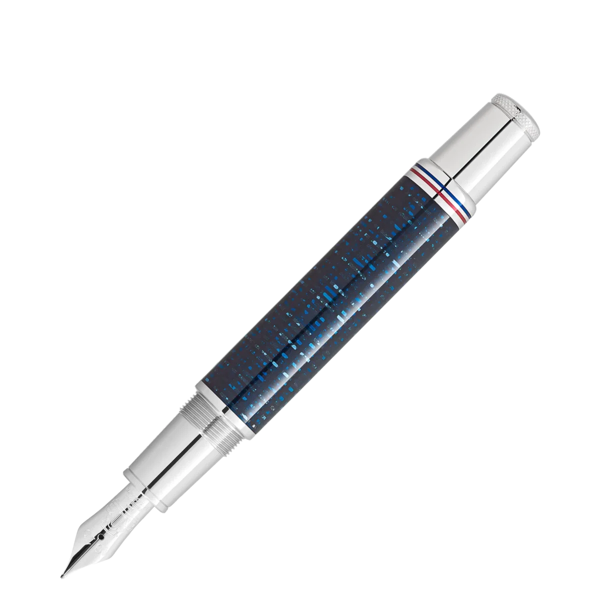 Vissa romaner går till litteraturhistorien och blir samtidigt symboler för en hel epok. F. Scott Fitzgeralds ”The Great Gatsby” är en sådan pärla i modern amerikansk litteratur. Romanen, som publicerades 1925, målar upp en fascinerande bild av jazzåldern och de glada tjugotalet, en tid präglad av oöverträffad rikedom och självförhävelse. Det pulserande New York City, de opulenta herrgårdarna på Long Island och de glittrande societetsfesterna utgör bakgrunden till berättelsen om Jay Gatsby, en mystisk miljonär som inte skyr några medel för att återvinna sin förlorade ungdoms kärlek, Daisy Buchanan.Det glittrande New York under Gatsby-eran, där de glänsande art déco-skyskraporna mot den blå kvällshimlen inspirerade designen av Great Characters Homage to The Great Gatsby Special Edition. Skapad som en hyllning till ett tidigt Montblanc-skrivinstrument från art déco-eran, verkar ytan på pennkroppen, som är tillverkad med en speciell teknik, reflektera den blomstrande stadens upplysta höghusfasader på natten. Det är ingen fiktiv anordning, utan lyser faktiskt som det gröna ljuset på bryggan vid Daisys hus i ”The Great Gatsby”. Det fluorescerande Montblanc-emblemet på lockets ovansida fångar upp och lagrar ljus under dagen, så att det lyser i mörkret. Pengarnas uppenbara makt symboliseras i denna upplaga av den platinabelagda klämman som har formen av en pengaklämma. Dess rundade öppning pryds av Jay Gatsbys initialer i form av ett rombformat, guldbelagt art déco-monogram. Myten om den amerikanska drömmen och designen av de ofta eleganta pluntaflaskorna från art déco-perioden refereras till av konen som imiterar den graverade skruvkorken på en flaska och de fina ringarna i amerikanska flaggans färger som omger den. Essensen av den uppfyllda amerikanska drömmen avslöjas när man tar av locket på utgåvan och får en glimt av den präglade pennspetsen i massivt Au 585 rhodiumbelagt guld. Den är dekorerad med en bild av Jay Gatsbys lyxiga bil, som F. Scott Fitzgerald entusiastiskt beskriver som ”en rik krämfärg, glänsande av nickel, … och terrasserad med ett labyrint av vindrutor som speglade ett dussin solar”.