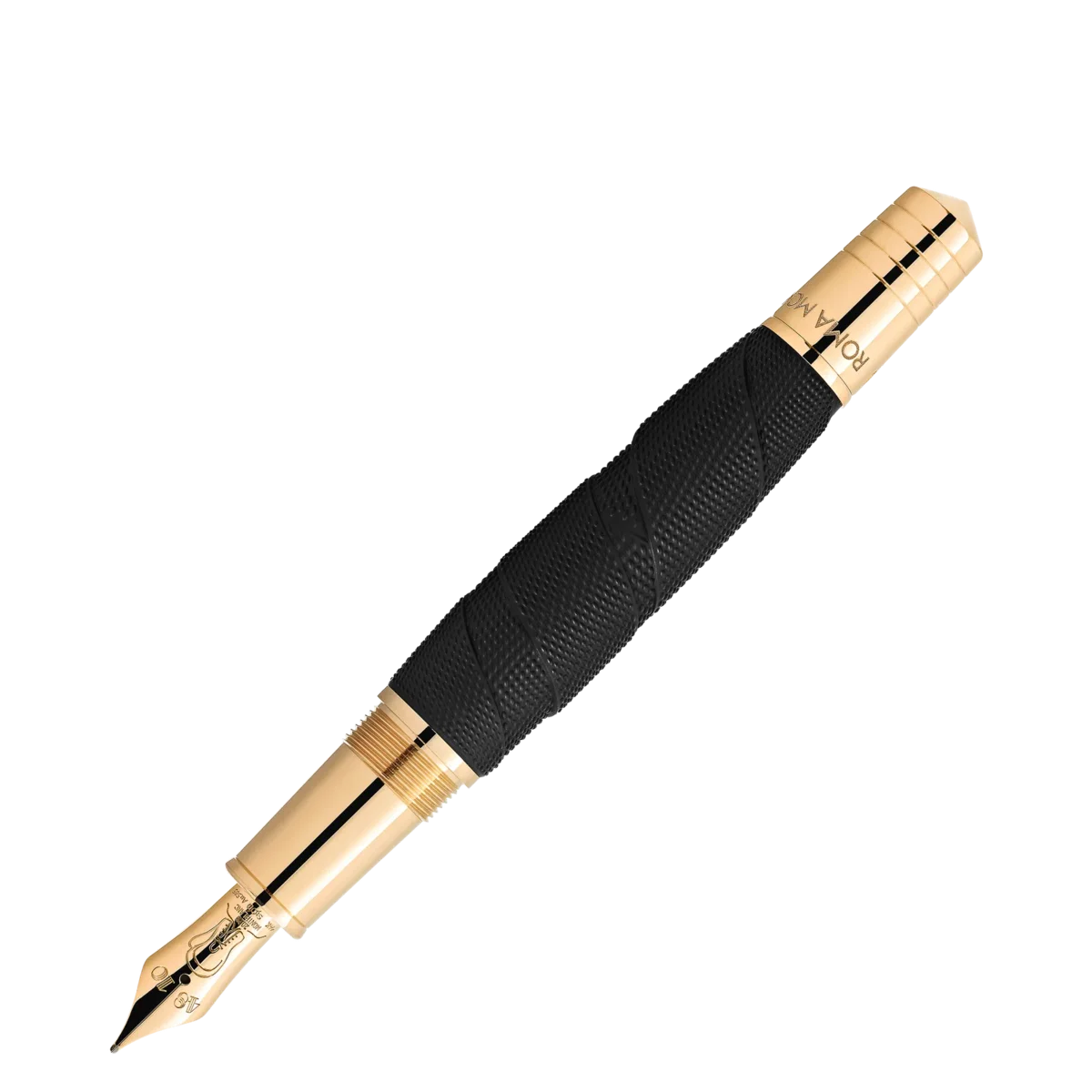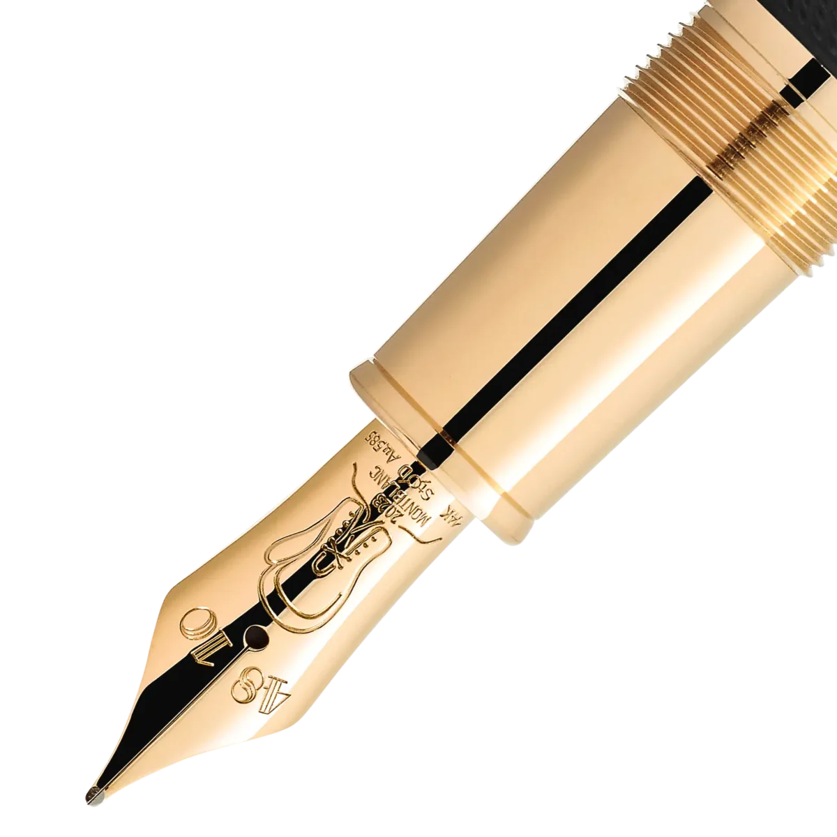 Det är få idrottare som hyllas och hedras som den trefaldige världsmästaren i tungvikt, Muhammad Ali, vars legendariska ögonblick inom idrott och medborgarrättsaktivism gjorde honom till en av 1900-talets mest inflytelserika idrottare och humanitärer. Som idrottare skakade Ali om världen med sin styrka, skicklighet och personlighet och blev världsmästare i tungvikt vid bara 22 års ålder. Hans största triumf var dock hans humanitära insatser. Kåpan är tillverkad av dyrbar svart harts och liknar en boxningssäck, medan cylindern ser ut som den boxningstejp som idrottare använder för att linda in sina händer. Kåpan har olika designelement, såsom ett berömt utrop av Ali och en fjäril inspirerad av hans typiska kampstil: ”Flyg som en fjäril, stick som ett bi”. Den spetsiga konen tar upp denna idé och är graverad med fyra linjer som representerar boxningsringens rep. Inskriptionerna på konen hänvisar till Alis seger vid OS i Rom 1960 och hans första världsmästerskap i tungvikt som han vann i Miami 1964. Detaljerna om hans seger, nämligen att han vann i sjunde ronden genom teknisk knockout, finns på pennkapsylens ring. För att fira hans första titel är Montblanc-emblemet i vit harts prydd med en ”1”. För att understryka denna framgång är klämman formad som ett boxningsmästarbälte och bär hans namn. Den handgjorda pennspetsen i massivt 585 guld visar en boxningshandske. Identifikationsnummer MB129333 Fysisk vikt 62,59 g Mått 147 mm * 17,3 mm