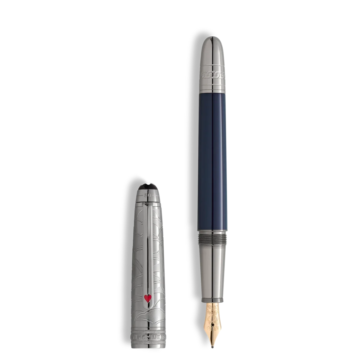 Meisterstück Around the World in 80 Days-kollektionen är inspirerad av Jules Vernes berömda äventyrsroman. Solitaire Doué Classique reservoarpenna, prydd med polerad mörkblå ädel lack och metallhätta, berättar om Mr Fogg och Passepartouts episka resa. På den sista etappen från Yokohama tillbaka till London via USA korsar duon den vidsträckta amerikanska kontinenten med tåg. Fördjupa dig i de intrikata detaljerna – ett tåg elegant lasergraverat på locket, ett säkerhetskedjemönster på konen, som speglar ett avgörande ögonblick när Passepartout kopplar loss tåget från loket för att rädda besättningen som attackerats av Sioux.Kepsens design fångar tryckventilerna och den böljande röken från lokomotivet, medan klämman pryds av ett rött lackerat hjärterkort, som symboliserar föreningen mellan Phileas Fogg och prinsessan Aouda. Dessutom representerar korten Foggs djärva satsning att fullborda resan på bara 80 dagar. På kepsens ovansida finns en präglad tidslinje över resan – 36 dagar från Yokohama till London, som kulminerar i totalt 80 dagar runt jorden.Detta skrivinstrument förhöjs av en handgjord 18K guldspets märkt med 14/11 och 21/12 – en påminnelse om Mr Foggs avresa från Yokohama den 14 november och hans ambitiösa plan att återvända till klubben i London den 21 december för att vinna vadet. Den är också prydd med en avbildning av en varmluftsballong, en hänvisning till Jules Vernes första äventyrsroman. Identifieringsnummer MB132892 Fysisk vikt 50,14 g Mått 139,8 mm * 14 mm
