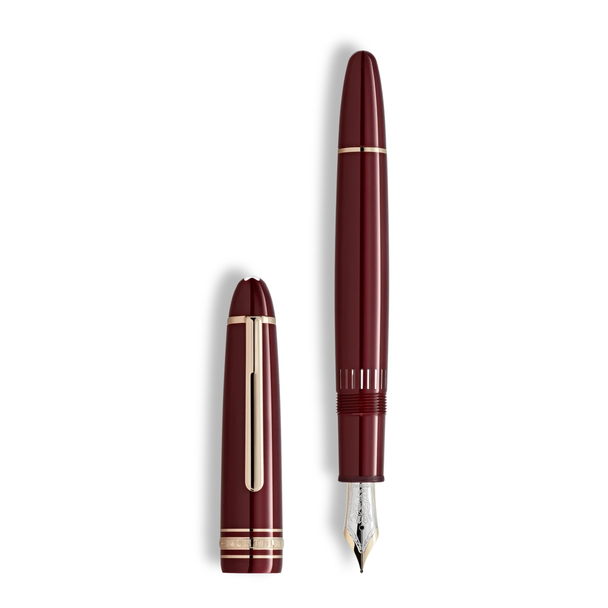 Den tidlösa designen på Montblanc Meisterstück LeGrand Burgundy Red Fountain Pen speglar Maisonens historia, där burgundy har varit en framträdande färgton sedan 1920-talet. Denna färg har sedan dess varit en stapelvara i Montblancs arv. Kåpan och pennkroppen är tillverkade i burgundy röd ädelharts med signaturdetaljer i guld, med det ikoniska vita Montblanc-emblemet inlagt i kåpans topp. Med signaturguld beskriver Montblanc den upplysta nyansen av gult guld som har blivit en uppskattad ton för Maison’s skrivinstrument.