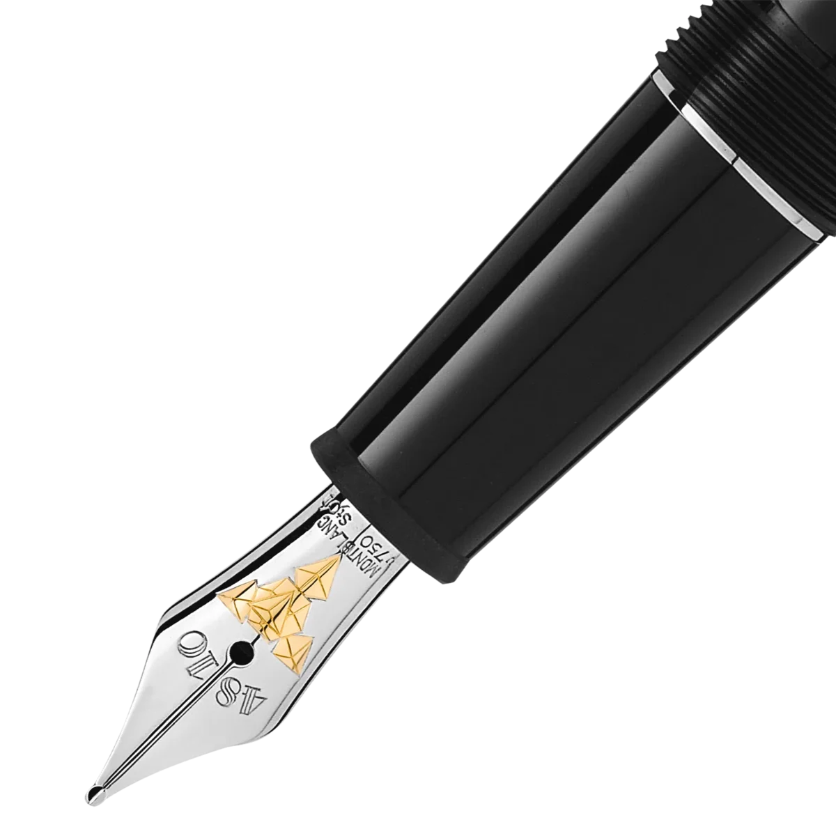 Meisterstück Solitaire Geometric Dimension föddes ur önskan att förena Montblancs klassiska design med unika material. Detta skrivinstrument är tillverkat av svart ädelharts och har en graverad lock med ett tredimensionellt geometriskt mönster med optisk effekt i en sofistikerad platinafärg. Det har en Au750 tvåfärgad belagd spets med specialdesign, en platinabelagd klämma och tre platinabelagda ringar med Montblancs varumärke ingraverat. Med Montblanc-emblemet som prydnad tilltalar den individens personlighet. Identifikationsnummer MB132501 Fysisk vikt 33,498 g Mått 140 mm * 13,7 mm
