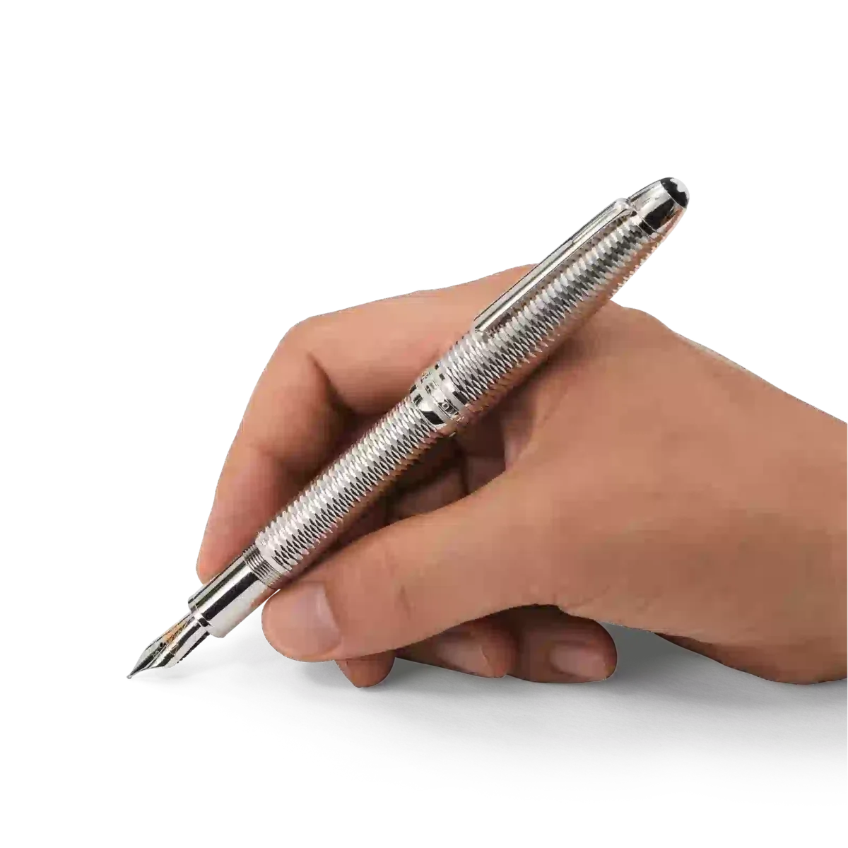 Meisterstück Solitaire Geometric Dimension föddes ur önskan att förena Montblancs klassiska design med unika material. Detta skrivinstrument, graverat med ett tredimensionellt geometriskt mönster med optisk effekt i en sofistikerad platinafärg, har en Au585 tvåfärgad belagd spets med specialdesign, en platinabelagd klämma och tre platinabelagda ringar med Montblancs varumärke präglat. Den är avslutad med Montblanc-emblemet och tilltalar individens personlighet.