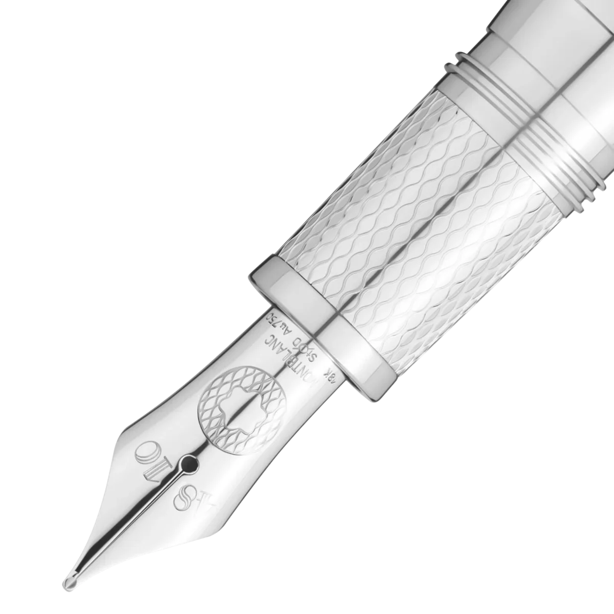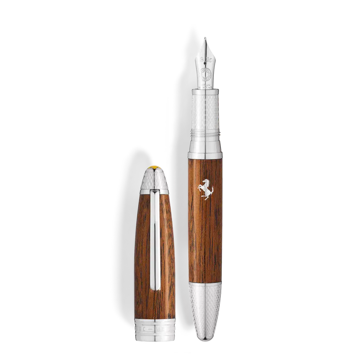 Ferraris Tailor Made-program är uppbyggt kring tre kollektioner: Classica, Inedita och Scuderia. Ferraris kunder kan sedan hämta inspiration från en eller flera av dessa kollektioner och anpassa de olika elementen efter sin egen smak. Meisterstück Great Masters Ferrari Classica, den första utgåvan som lanseras inom detta program, är inspirerad av Classica-kollektionen, som ger en modern twist till stilen och funktionerna hos Maranellos ikoniska GT-bilar. Baserat på dessa egenskaper hyllar skrivinstrumentet designen på 250 GTO-ratten, tillsammans med känslan och drömmen om att hålla i en. Skrivinstrumentet har en Au750-spets i massivt guld med rodiumbeläggning och en speciell gravyr. Kapsylens topp pryds av Montblanc-emblemet i gul harts – en hänvisning till Ferraris färgpalett – medan den platinabelagda kapsylens topp och kon med gravyr påminner om rattens grepp, en detalj som också återfinns på framdelen. Kåpan och pennkroppen är tillverkade av sapelinträ, förhöjt med en elegant svart lackinsats och Ferraris stegrande häst. Identifikationsnummer MB131318 Fysisk vikt 69,341 g Mått 148,2 mm * 17,3 mm