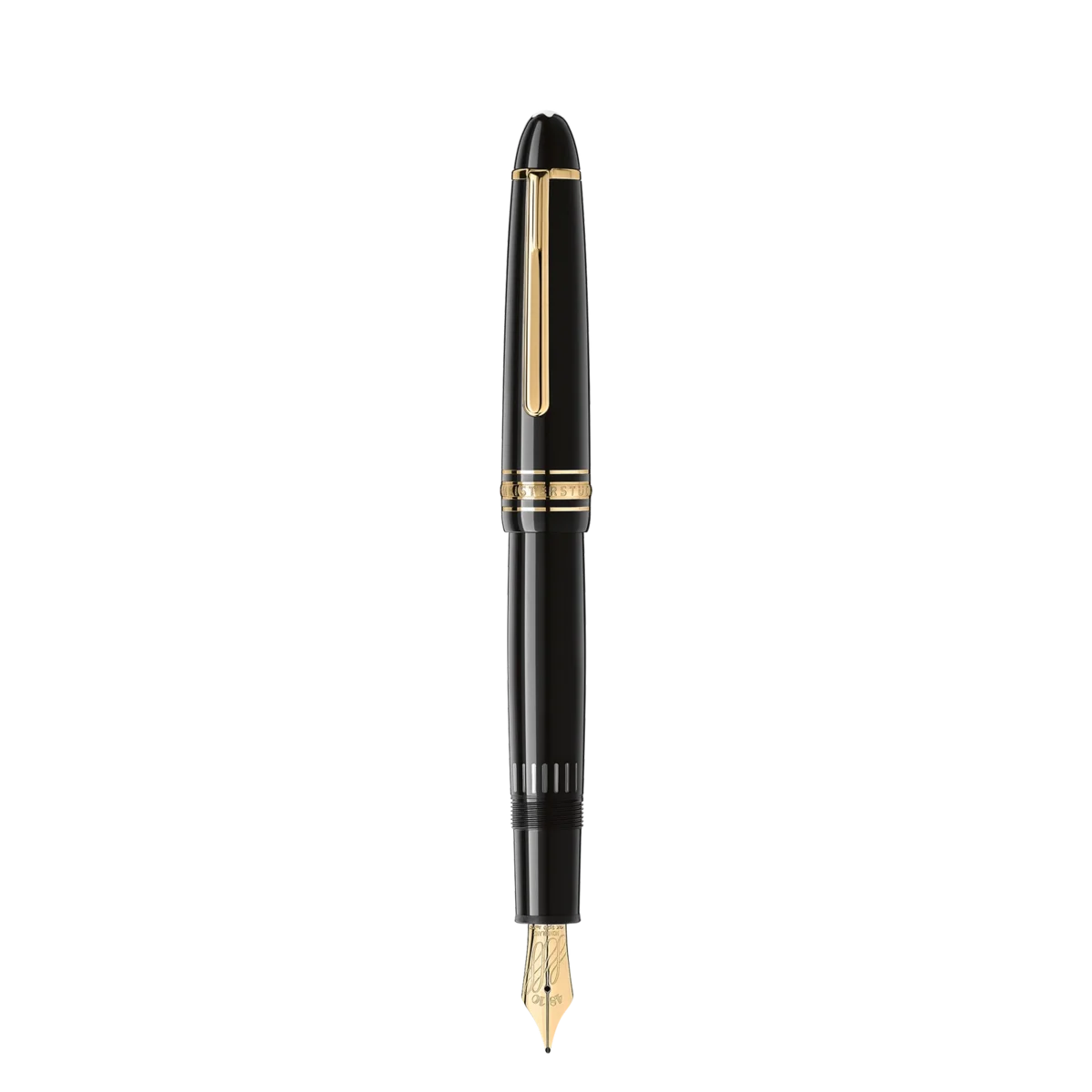 Montblanc Meisterstück LeGrand Gold-coated-kollektionen är en design som skriver historia. Meisterstück, som introducerades 1924 och betyder ”mästerverk”, har blivit en av symbolerna för högkvalitativa lyxiga skrivinstrument. Kåpan och pennkroppen är tillverkade i svart ädelharts med det ikoniska vita Montblanc-emblemet inlagt i kåpans topp. Reservoarpennan är krönt med en innovativ flexibel spets, handgjord i Au750 / 18K massivt guld och avslutad med en delikat trippel 8; en symbol inspirerad av kalligrafirörelser. Den flexibla spetsen möjliggör en mängd olika individuella skrivstilar och linjebredder, som kan variera från extra fin (0,3 mm) till dubbel bred (1,6 mm) beroende på trycket som appliceras.