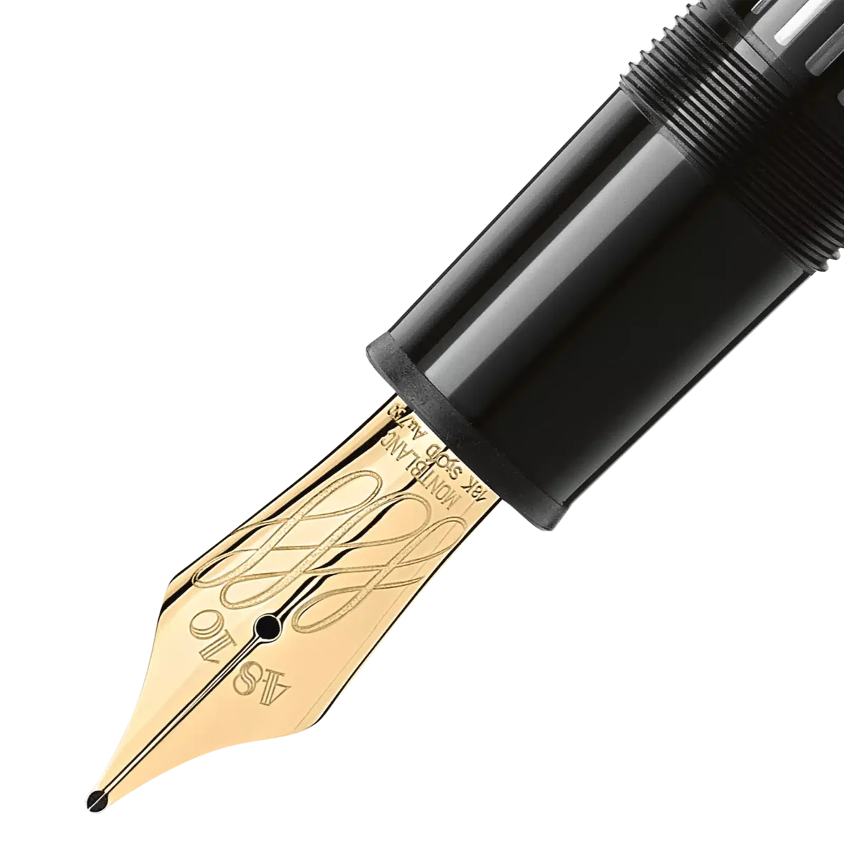 Montblanc Meisterstück LeGrand Gold-coated-kollektionen är en design som skriver historia. Meisterstück, som introducerades 1924 och betyder ”mästerverk”, har blivit en av symbolerna för högkvalitativa lyxiga skrivinstrument. Kåpan och pennkroppen är tillverkade i svart ädelharts med det ikoniska vita Montblanc-emblemet inlagt i kåpans topp. Reservoarpennan är krönt med ett innovativt flexibelt pennspets, handgjort i Au750 massivt guld och avslutat med en delikat trippel 8; en symbol inspirerad av kalligrafirörelser. Det flexibla pennspetsen möjliggör en mängd individuella skrivstilar och linjebredder, som kan variera från extra fin (0,3 mm) till dubbel bred (1,6 mm) beroende på trycket som appliceras.