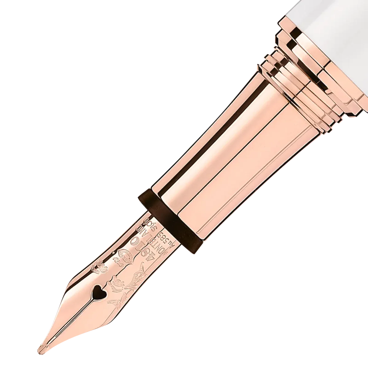 Marilyn Monroe (1926–1962) har blivit en amerikansk kulturikon som hyllas av många över hela världen. Skådespelerskan var ett underbarn hos Lee Strasberg och ett av 1950-talets mest populära sexsymboler. Än idag fortsätter hon att inspirera kvinnor över hela världen och säkerställer sin status som kultur- och stilikon. Designen på Marilyn Monroe Special Edition är inspirerad av de ikoniska Ferragamo-högklackade skor som Marilyn bar, vilket speglar hennes kvinnlighet och sensualitet. Färgen på skrivinstrumentet hänvisar till den ikoniska vita klänningen som hon bar i filmen ”The Seven Year Itch”. Klämmans form med pärla påminner om hennes smycken och kärlek till pärlor. Identifikationsnummer MB132119 Fysisk vikt 144 g Mått 145 mm * 17,3 mm
