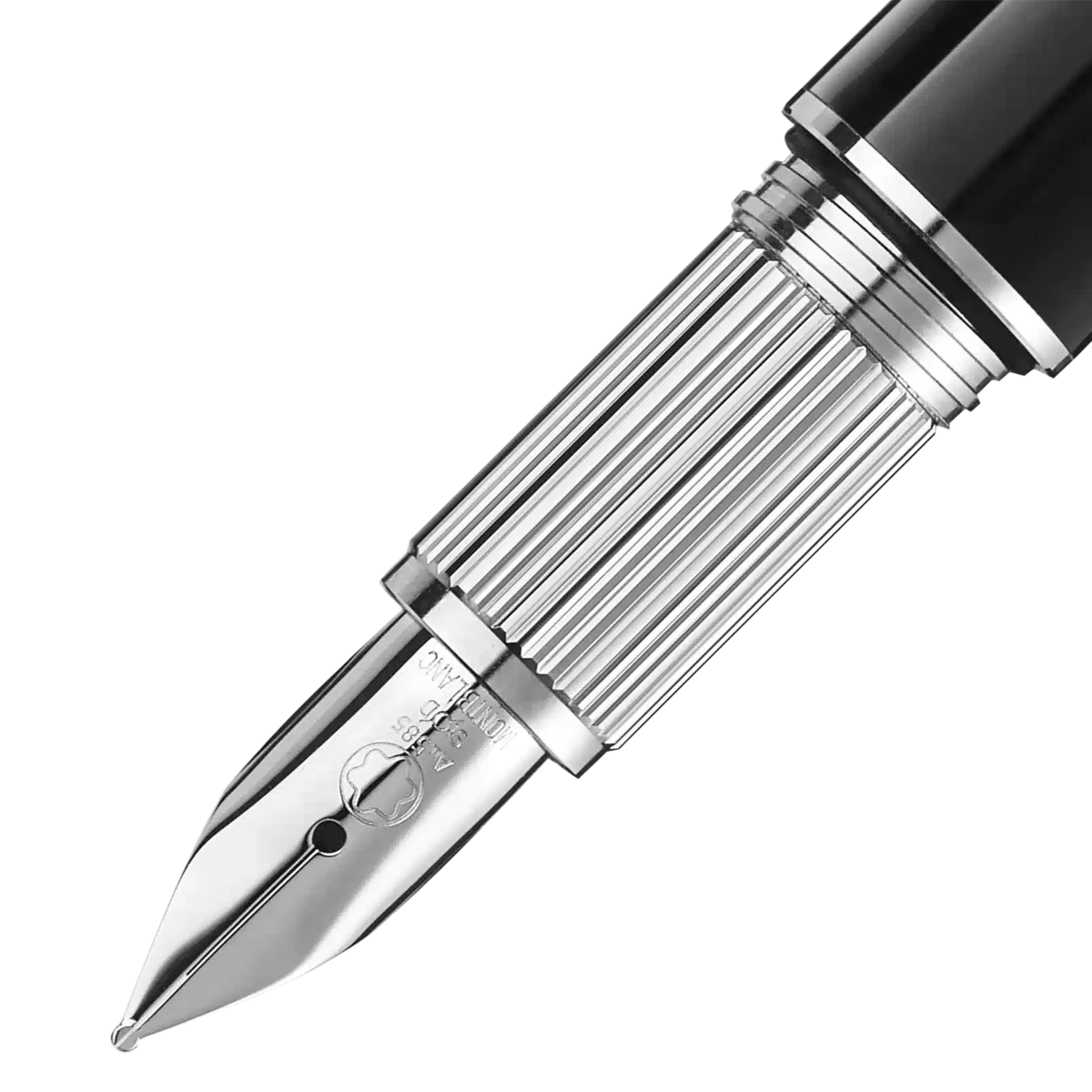 Den nya StarWalker handlar om att vandra bland stjärnorna. Den handlar om att utforska kosmos och främmande galaxer. Den handlar om att vara en del av ett av mänsklighetens mest mystiska och mäktiga äventyr: utforskningen av rymden. Kollektionens nya design hyllar den oerhörda känslan som alla rymdresenärer beskriver när de ser vår blå planet sväva i rymdens oändliga vidsträckthet. StarWalker-emblemet har en blå genomskinlig kupol under Montblanc-emblemet som påminner om jorden som dyker upp över månens horisont. StarWalker Doué har en platinabelagd kapsel och beslag samt ett svart hölje av ädelharts. Reservoarpennan är handgjord med en rodiumpläterad Au585/14 K guldspets. Identifikationsnummer MB132534 Fysisk vikt 42,88 g Mått 135,7 mm * 14,9 mm