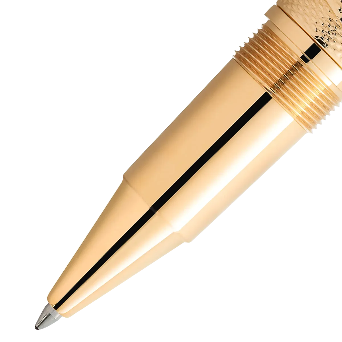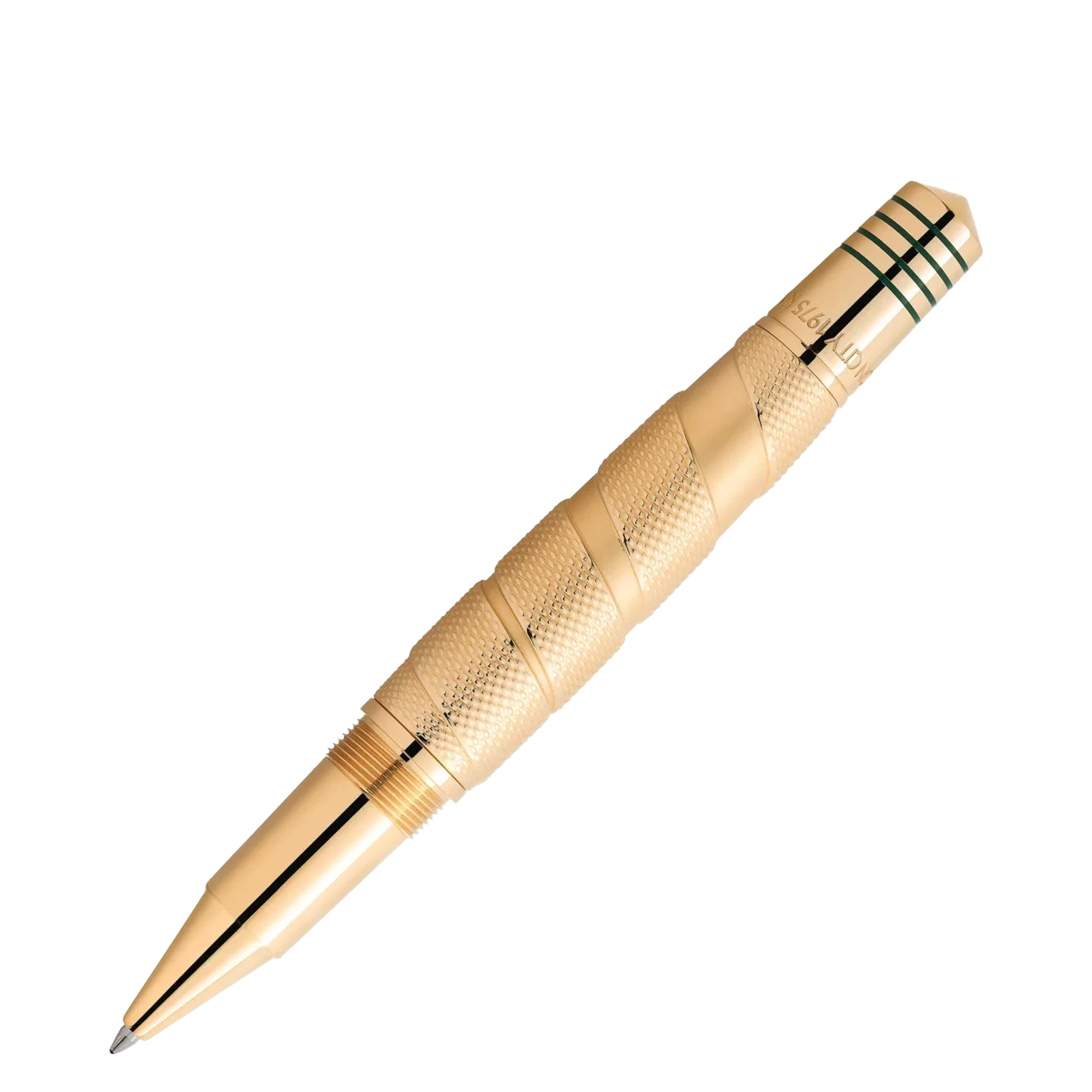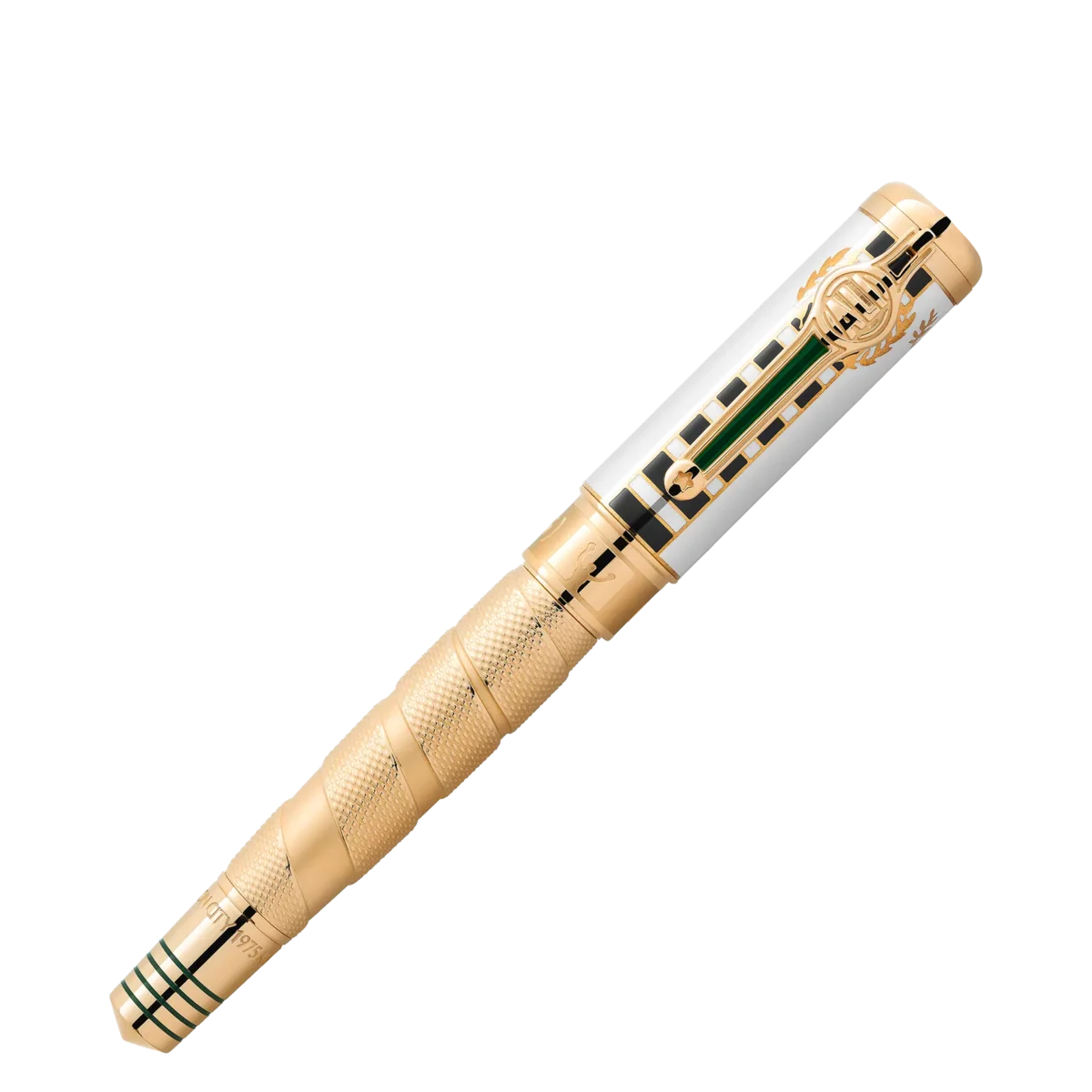 Det är få idrottare som hyllas och hedras som den trefaldige världsmästaren i tungvikt, Muhammad Ali, vars legendariska ögonblick inom idrott och medborgarrättsaktivism gjorde honom till en av 1900-talets mest inflytelserika idrottare och humanitärer. Som idrottare skakade Ali om världen med sin styrka, skicklighet och personlighet och blev världsmästare i tungvikt vid bara 22 års ålder. Hans största triumf var dock hans humanitära insatser. Inspirerad av den mantel Ali bar när han gick in i den legendariska matchen i Kinshasa, Zaire, 1974, representerar den dyrbara lacken på locket detta distinkta mönster, medan mönstret på den guldbelagda pennkroppen liknar de boxningstejper som idrottare använder för att linda in sina händer. Den guldbelagda fjärilen på kepsen är inspirerad av hans typiska boxningsstil: ”Flyg som en fjäril, stick som ett bi”. Den spetsiga konen tar upp den idén och de fyra lackerade linjerna liknar repen i en boxningsring. Inskriptionerna på konen hänvisar till Alis seger i matchen 1974 med smeknamnet ”Rumble in the Jungle”, då Ali vann sitt andra världsmästerskap i tungvikt. Detaljerna om hans seger, nämligen att han vann i åttonde ronden genom teknisk knockout, finns på lockets ring. Konan har också en referens till en berömd match med Ali 1975, med smeknamnet ”Thrilla in Manila”. För att fira hans andra titel är Montblanc-emblemet i vit ädelharts prydd med en ”2”. För att understryka denna framgång är klämman formad som ett boxningsmästarbälte och bär hans namn.