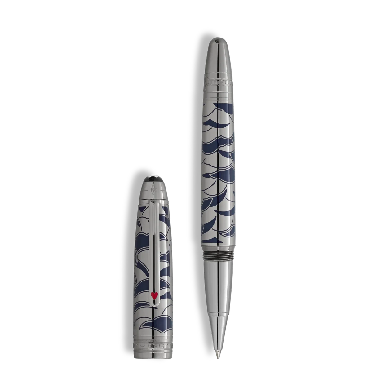 Meisterstück Around the World in 80 Days-kollektionen är inspirerad av Jules Vernes berömda äventyrsroman. Solitaire LeGrand Rollerball, prydd med ädelmetall, återger den episka resan som Mr Fogg och Passepartout gjorde. När de påbörjar den sista etappen från Yokohama tillbaka till London via USA, korsar duon den vidsträckta amerikanska kontinenten med tåg. Upptäck de intrikata detaljerna – ett tåg elegant lasergraverat på locket, ett säkerhetskedjemönster på konen, som speglar ett avgörande ögonblick när Passepartout kopplar loss tåget från loket för att rädda besättningen som attackerats av Sioux.Kepsens och cylinderns design fångar tryckventilerna och den böljande röken från lokomotivet, medan klämman pryds av ett rött lackerat hjärterkort, som symboliserar föreningen mellan Phileas Fogg och prinsessan Aouda. Dessutom representerar korten Foggs djärva satsning att fullborda resan på bara 80 dagar. På kepsens ovansida finns en präglad tidslinje över resan – 36 dagar från Yokohama till London, som kulminerar i den totala resan på 80 dagar runt jorden.