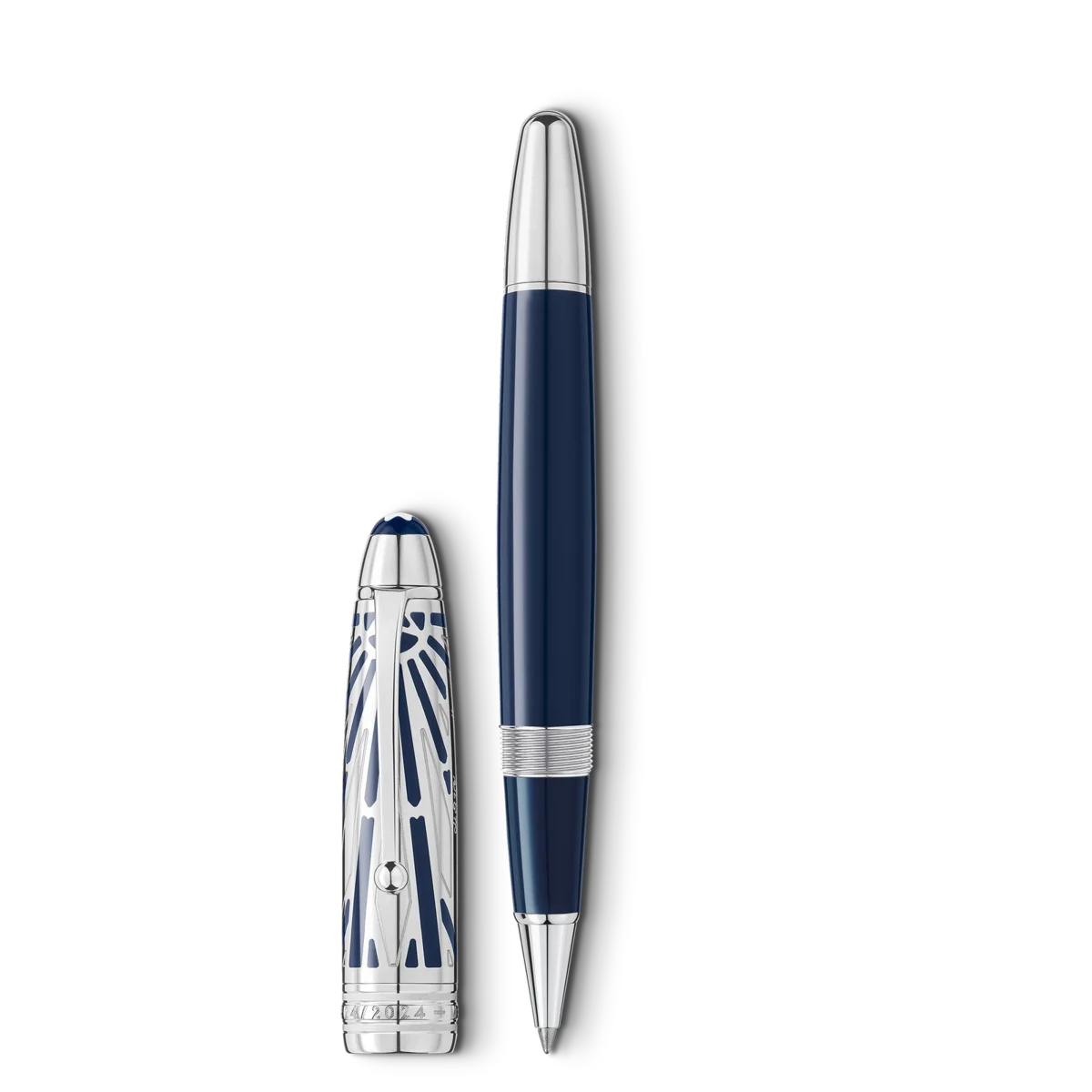 Sedan lanseringen 1924 har Montblancs Meisterstück allmänt ansetts vara det ultimata skrivinstrumentet, som symboliserar raffinerad smak och en djärv förlängning av en själv. Oavsett om den används för att skriva ett kärleksbrev eller underteckna ett historiskt dokument har Meisterstück lämnat ett outplånligt avtryck i historiens sidor.För att hedra denna milstolpe har Montblanc grävt djupt i sina arkiv och skapat Origin-kollektionen, som är en hyllning till varumärkets rika historia och arv. Kollektionen är inspirerad av tidiga design från våra arkiv samt designelement från de allra första Meisterstück-utgåvorna, och fångar den ursprungliga andan och förenar den med en modern touch. Det intrikata mönstret på locket, belagt med blå lack och platina, går tillbaka till en outgiven design som varit gömd i årtionden, vilket gav Montblanc möjlighet att äntligen introducera denna länge glömda design som påminner om art déco-perioden.Klämman är en hyllning till tidiga klämformar som finns i några av de första Meisterstück-skrivinstrumenten och väcker en känsla av nostalgi. Vid närmare granskning kan man upptäcka det ursprungliga Meisterstück-logotypen, som har prytt locket som en symbol för hög kvalitet sedan starten. Denna jubileumsutgåva är dekorerad med en speciell lockring som visar åren ”1924” och ”2024”.Skål för ytterligare 100 år av excellens med Meisterstück!