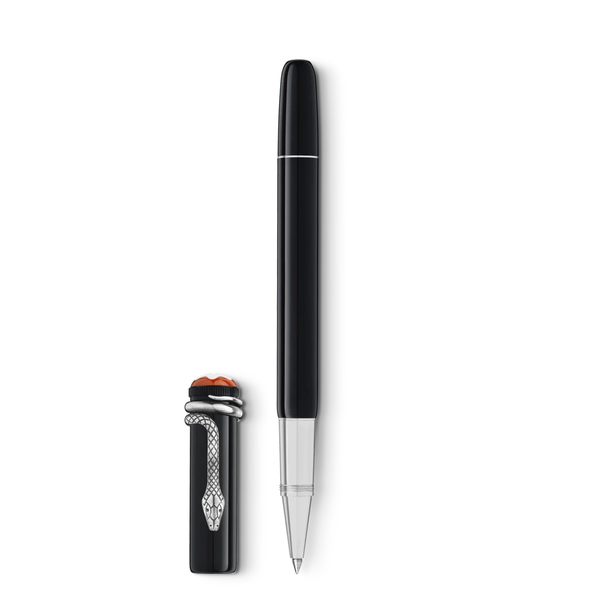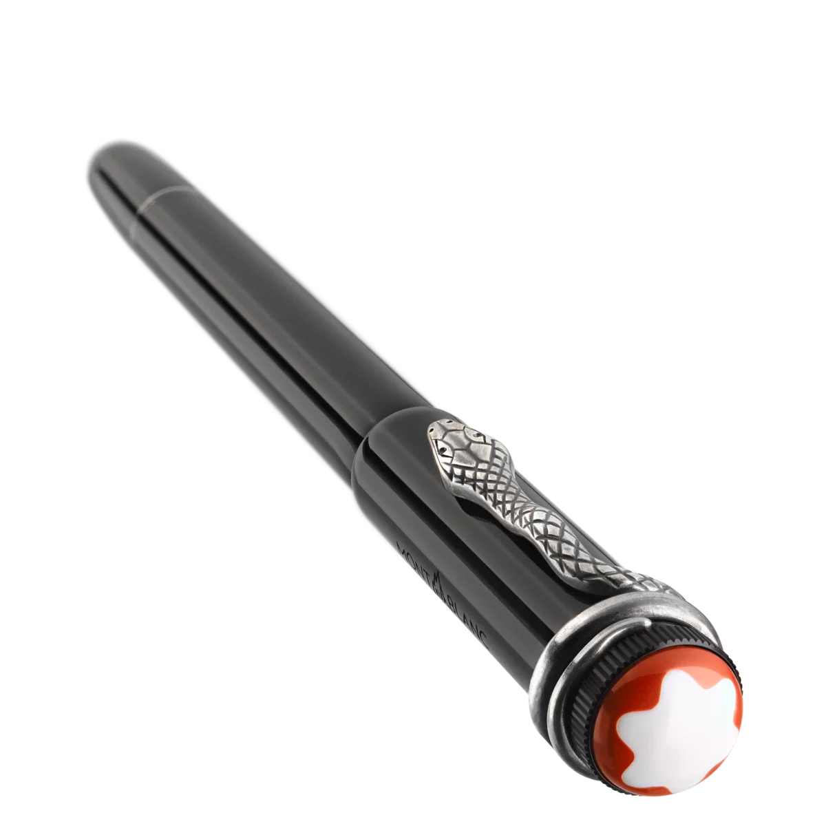 När den utvecklades 1906 ansågs Rouge et Noir-reservoarpennan vara en enastående teknisk prestation. Den var enkel att använda utan att man behövde doppa pennspetsen i ett bläckhorn. Heritage Collection Rouge et Noir hyllar Montblancs 110-åriga pionjäranda. Den legendariska skrivinstrumentet har fått en ny tolkning med en längre, smalare silhuett och hantverk som förfinats genom generationer. Snake Clip i vintage-look med matchande beslag. Klämman är tillverkad genom en stansnings- och lindningsprocess i en speciell legering och åldras genom en unik galvanisk process och avskalning. Identifikationsnummer MB132109 Fysisk vikt 155 g Mått 136 mm * 16 mm