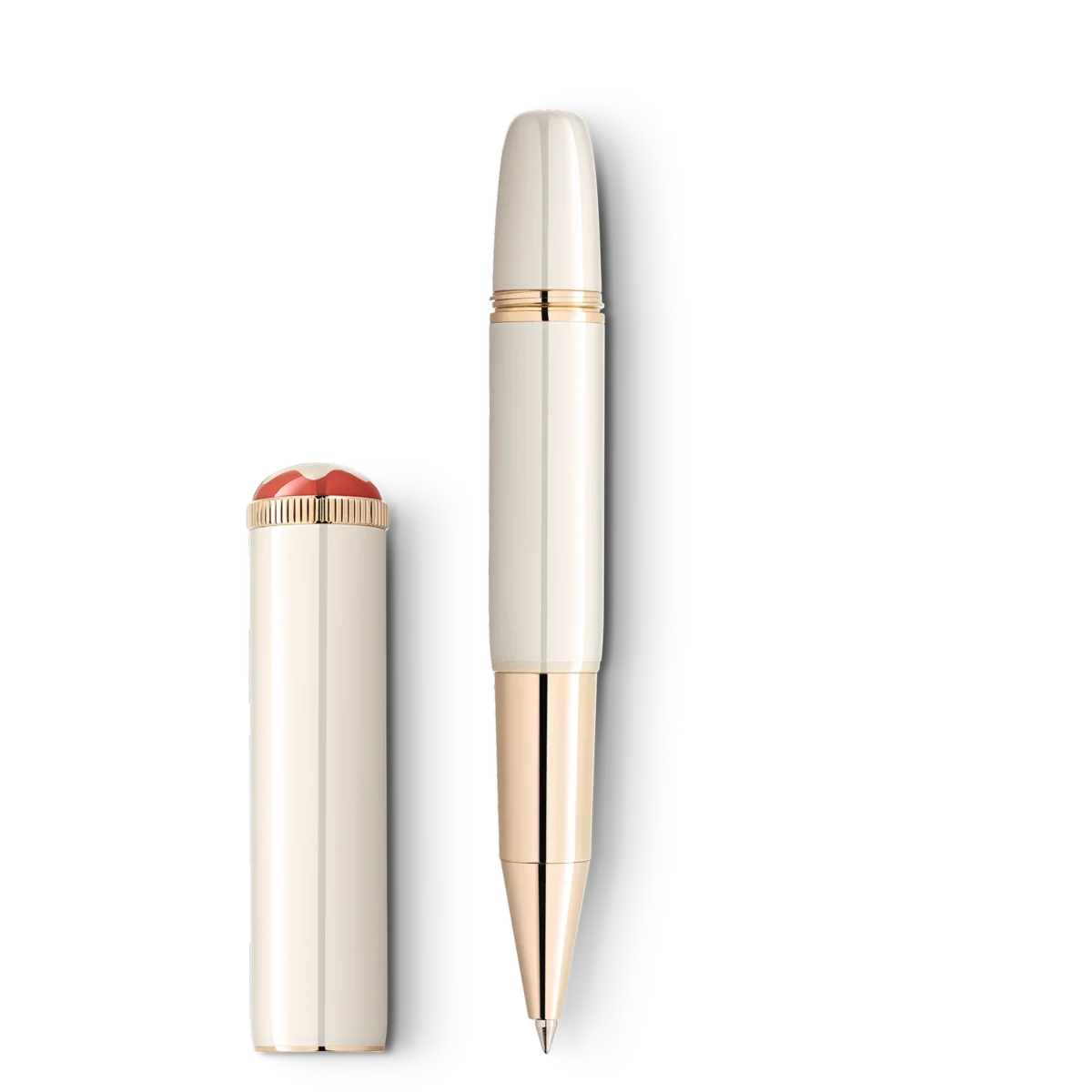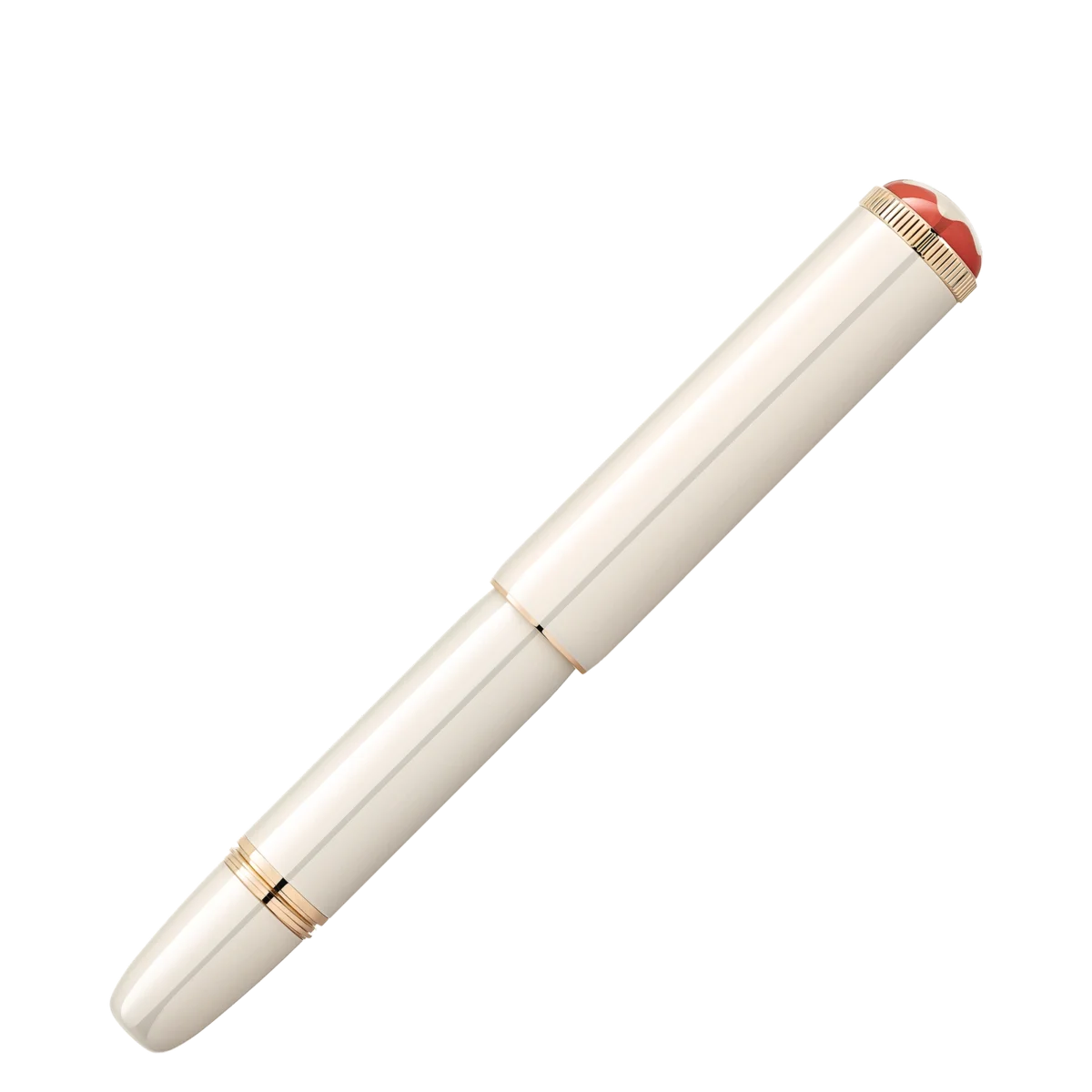 Montblanc Heritage Collection Rouge et Noir ”Baby” hyllar Montblanc-husets pionjäranda och rika arv. Inspirerad av de ursprungliga Montblanc ”Baby”-pennorna från 1920-talet, tolkar Montblanc den då oväntade designen på nytt och ger den en modern twist. Namnet ”Baby” beskriver på ett lekfullt sätt dess lilla storlek jämfört med andra Montblanc-skrivinstrument. Den är tillverkad i elfenbensfärgad ädel lack och har signaturförgyllda detaljer. Den kröns av ett Montblanc-emblem i ädelharts omgivet av den korallfärgade nyansen från Montblanc Rouge et Noir-kollektionen. Med signaturguld och/eller signaturguldbeläggning beskriver Montblanc den upplysta nyansen av gult guld som har blivit en uppskattad ton för Maison’s Writing Instruments.