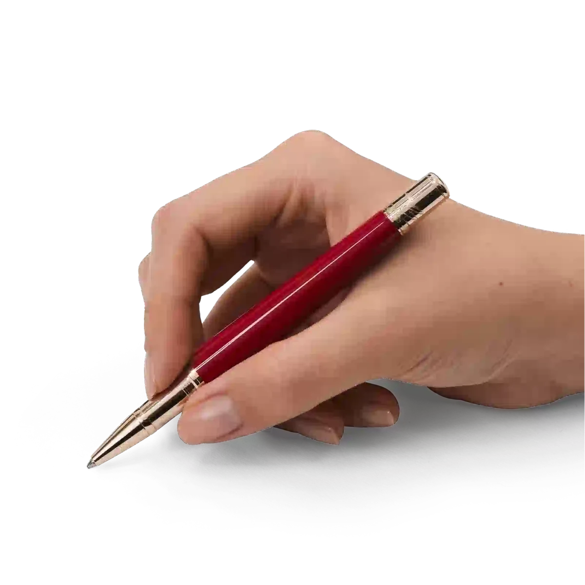Marilyn Monroe (1926–1962) har blivit en amerikansk kulturikon som hyllas av många över hela världen. Skådespelerskan var ett underbarn hos Lee Strasberg och en av 1950-talets mest populära sexsymboler. Än idag fortsätter hon att inspirera kvinnor över hela världen och säkerställer sin status som kultur- och stilikon. Designen på Marilyn Monroe Special Edition är inspirerad av de ikoniska Ferragamo-högklackade skorna som Marilyn bar och som speglade hennes kvinnlighet och sensualitet. Färgen på skrivinstrumentet hänvisar till hennes signaturläppstift (Ruby Tuesday från Max Factor). Klämmans form med pärla påminner om hennes smycken och kärlek till pärlor. Identifikationsnummer MB132117 Fysisk vikt 144 g Mått 145 mm * 17,3 mm