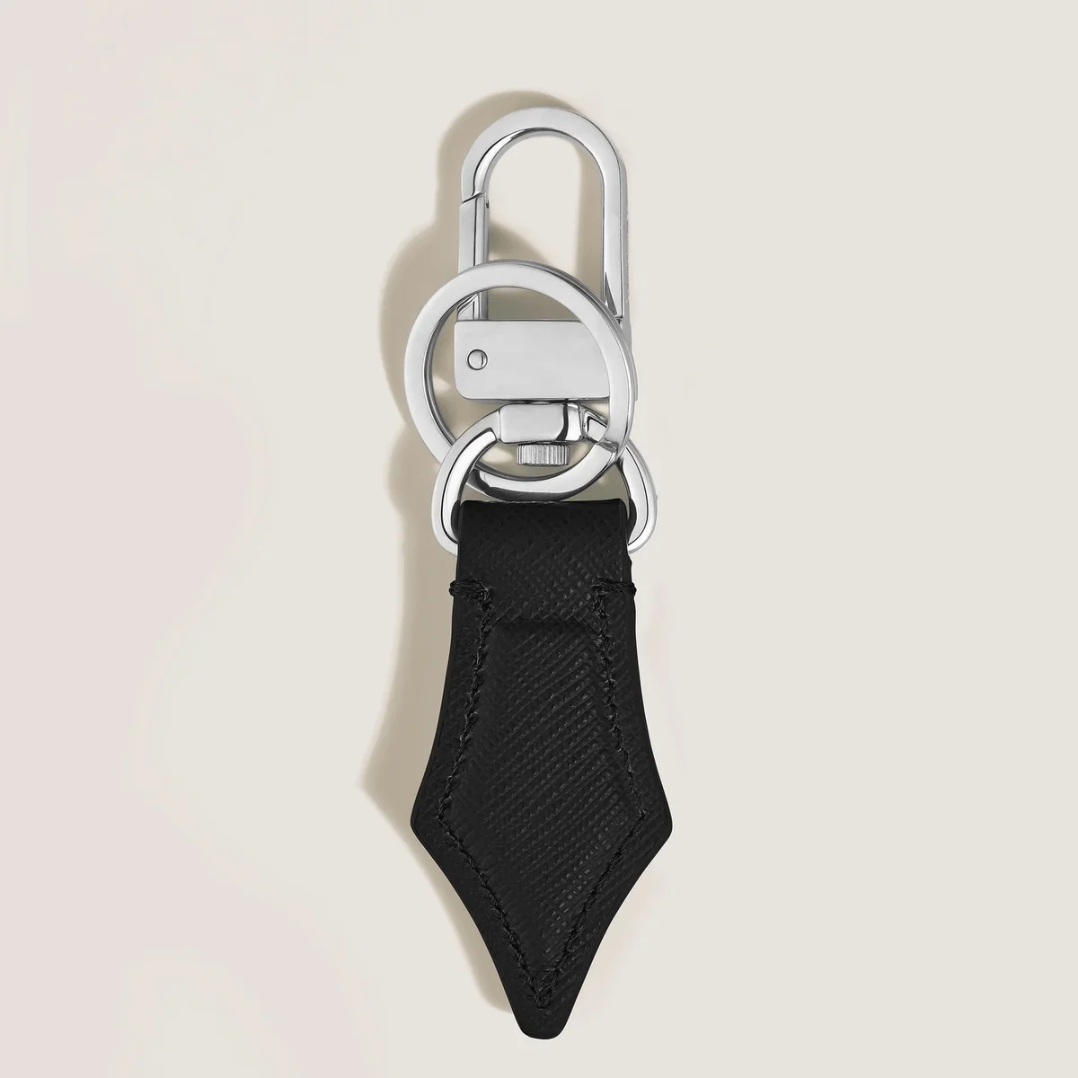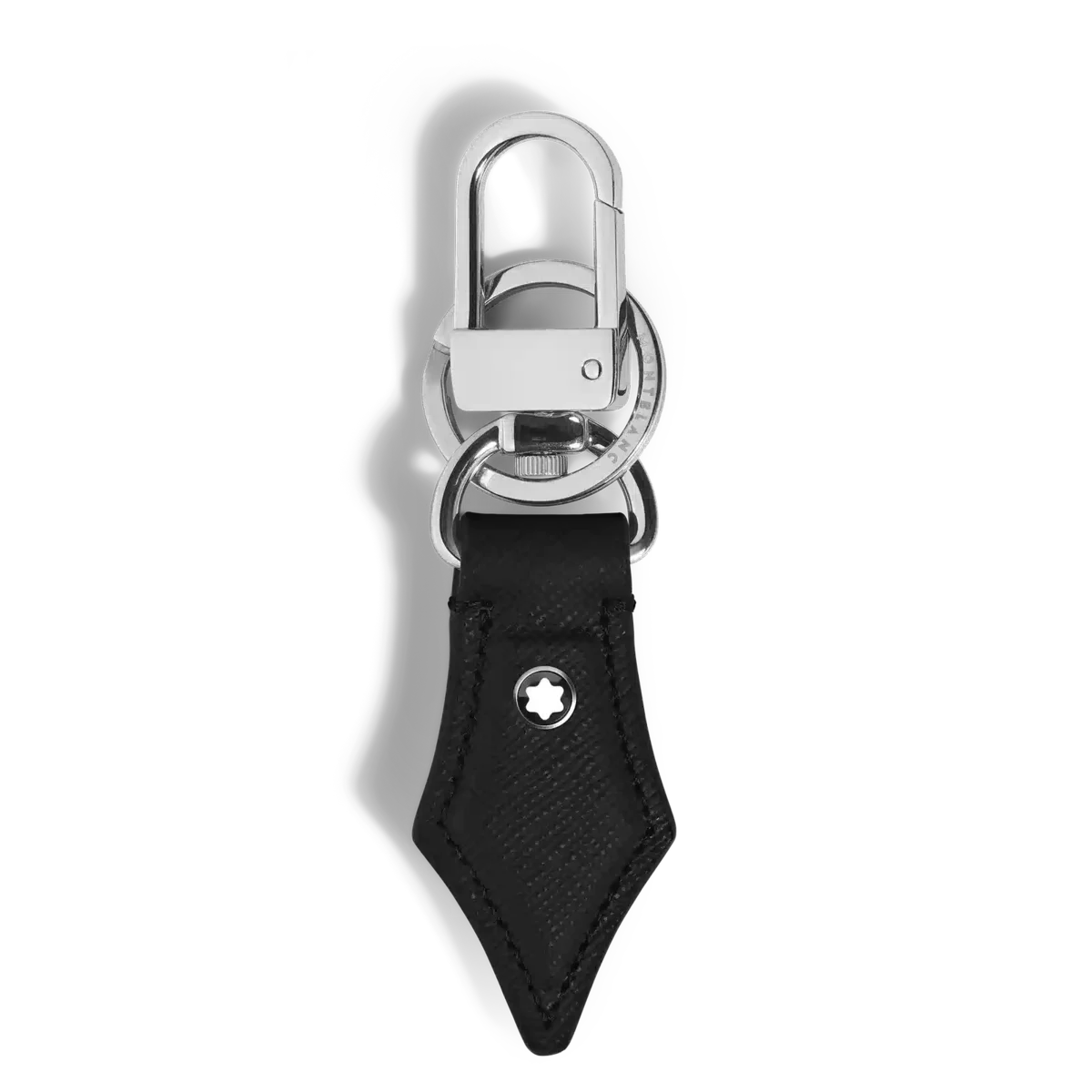 Montblancs nyckelring, tillverkad av präglat svart läder, är en subtil hyllning till skrivkonsten. Dess form, inspirerad av en reservoarpenna, speglar Montblancs arv med raffinerade detaljer. Den är praktiskt utformad med en hållbar ring för flera nycklar och en lättfäst krok för att fästa den på väskor.