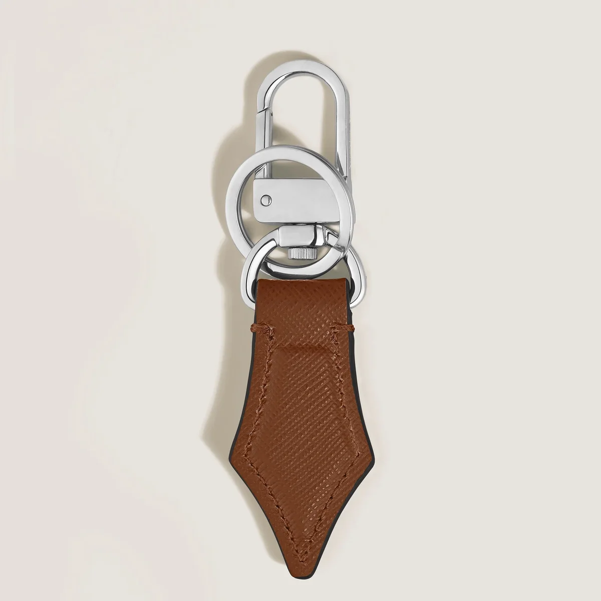 Montblancs nyckelring, tillverkad av präglat fauve-läder, är en subtil hyllning till skrivkonsten. Dess form, inspirerad av en reservoarpenna, återspeglar Montblancs arv med raffinerade detaljer. Den är praktiskt utformad med en hållbar ring för flera nycklar och en lättfäst krok för att fästa den på väskor. Ident-nr. MB220359