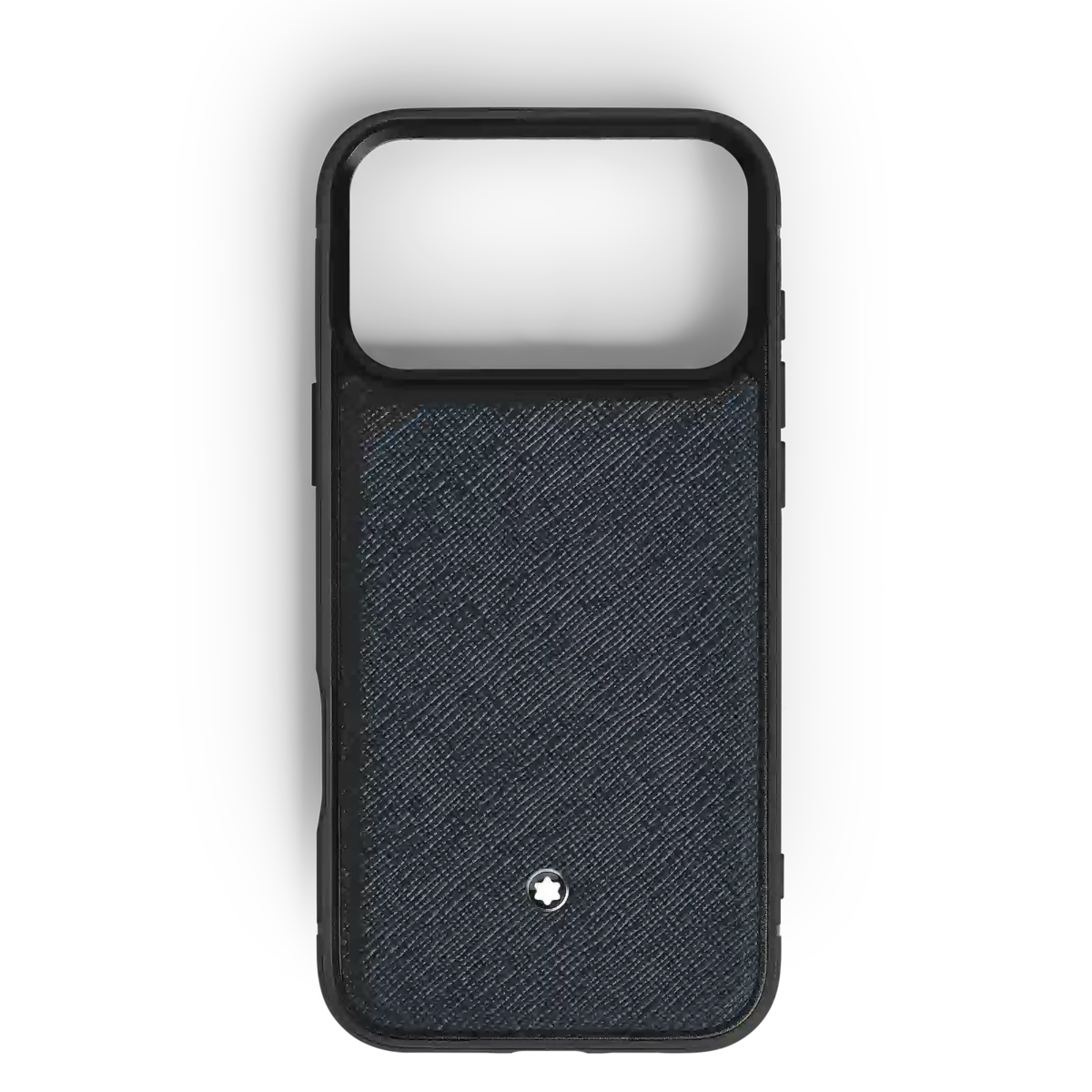 Skydda din enhet med stil med det hårda telefonfodralet Sartorial, exklusivt designat för Apple iPhone® 17 Pro Max. Detta fodral är tillverkat av tvåfärgat svart och marinblått Sartorial-präglat läder och pryds av det ikoniska Montblanc-emblemet. Det kombinerar sofistikerad design med pålitligt skydd för din värdefulla enhet.