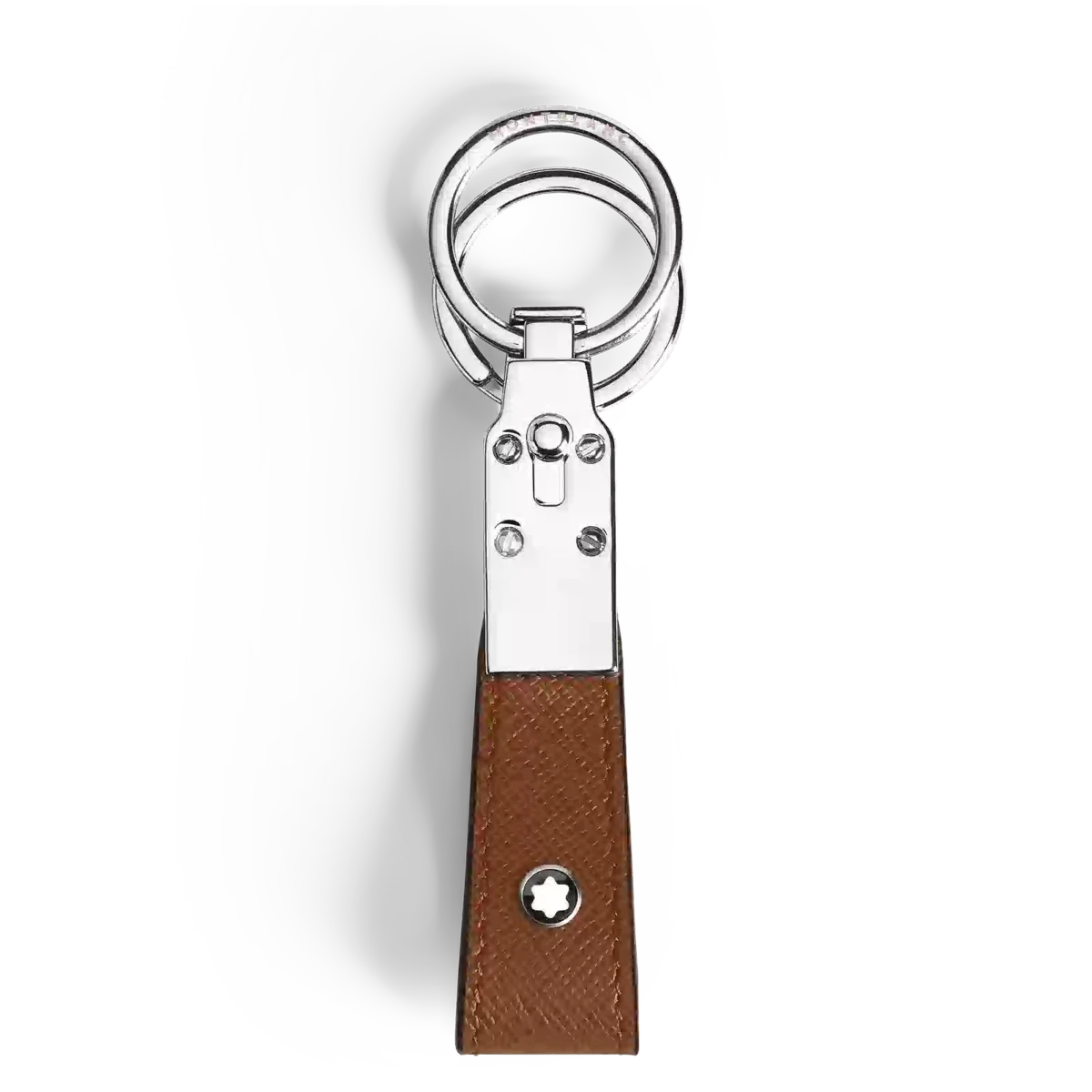 Denna nyckelring är tillverkad av präglat läder i en elegant fauvefärg och erbjuder ett stilfullt sätt att ha dina nödvändigheter nära till hands. Dess ögla kompletteras av en avtagbar ring, så att du enkelt kan fästa flera nycklar.