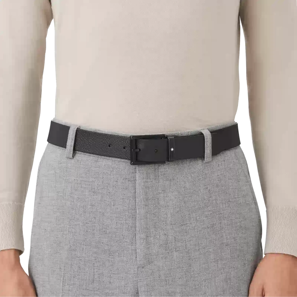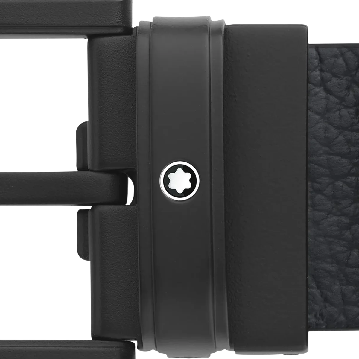 Detta vändbara läderbälte passar alla situationer och har en distinkt kombination av färger och texturer. Den 35 mm breda bältet har ena sidan i blått kornigt läder och den andra i slätt svart läder och knyts ihop med ett spänne med Montblancs logotyp.