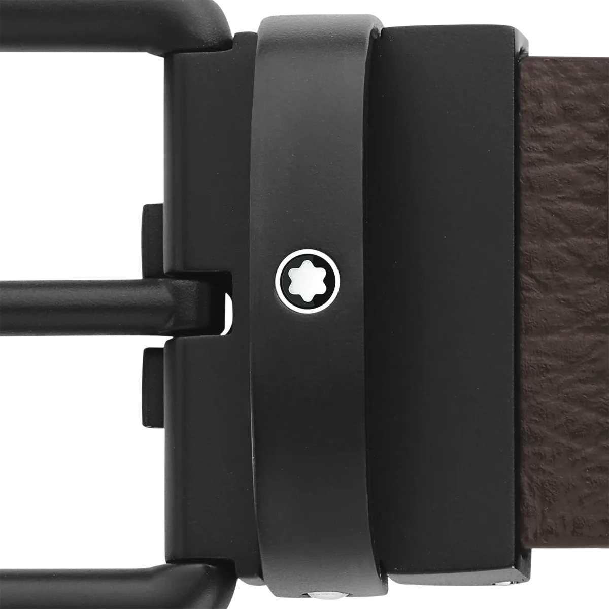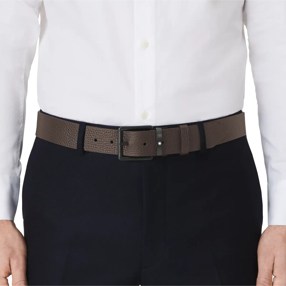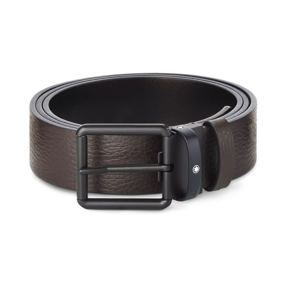 Detta vändbara läderbälte passar alla situationer och har en distinkt kombination av färger och texturer. Den 35 mm breda bältet har ena sidan i blått kornigt läder och den andra i slätt svart läder och knyts ihop med ett spänne med Montblancs logotyp. Identifieringsnummer MB131187 Mått 1200 mm * 35 mm * 5 mm