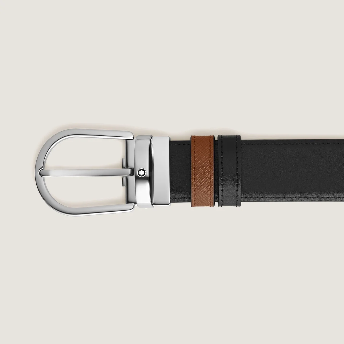 Upptäck alla detaljer om det vändbara bältet Horseshoe 35 mm i Sartorial-läder. Handla online i Montblancs officiella butik.