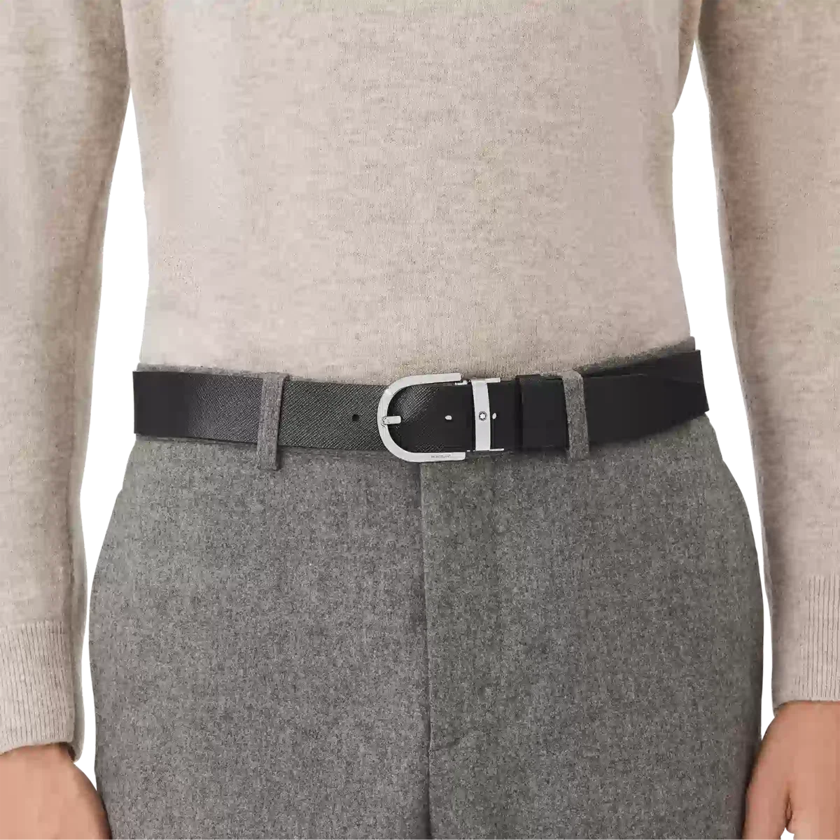 Upptäck alla detaljer i det svarta/mosto 35 mm vändbara läderbältet med hästskospänne. Handla online i Montblancs officiella butik.