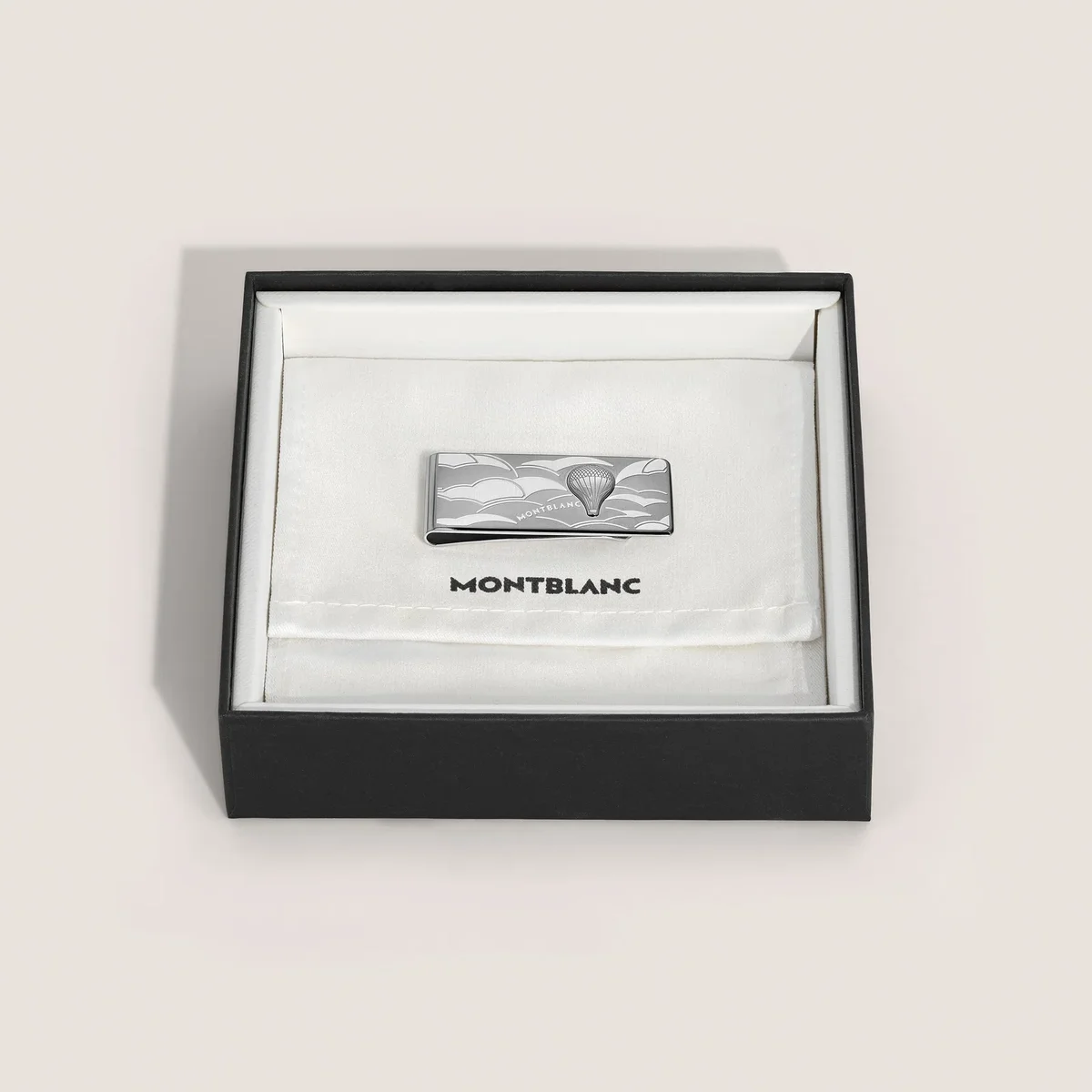 Pengaklämma i stål tillägnad Meisterstück Around the World in 80 Days-kollektionen. Designen pryds av en avbildning av en varmluftsballong, en referens till Jules Vernes första äventyrsroman.