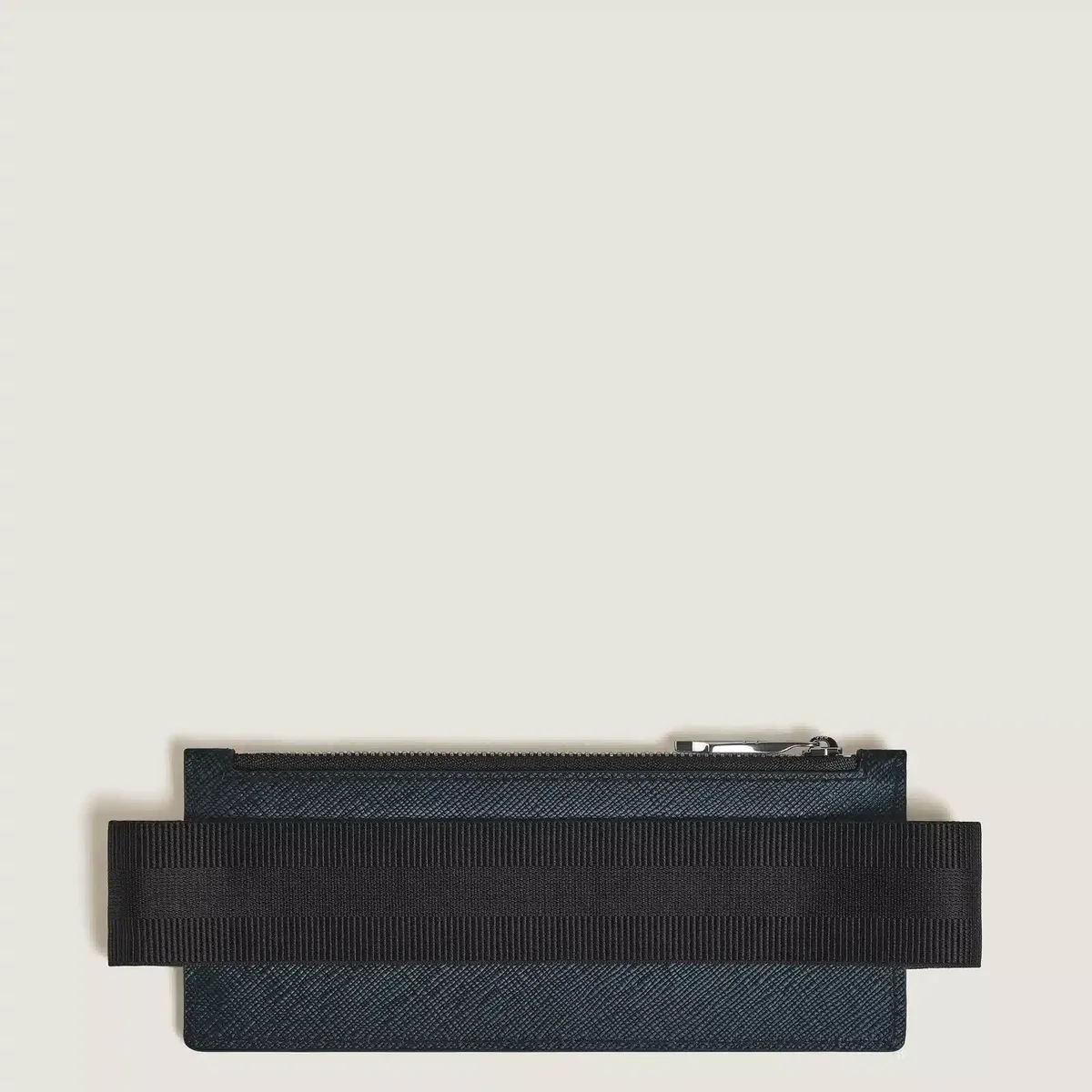 Denna pennfodral är tillverkad av tvåfärgat präglat sartorial-läder i blått och svart och är utformad för att rymma upp till två skrivinstrument, som passar Meisterstück Classique- eller LeGrand-storlekar. Den har en distinkt metalldragkedja i form av en pennspets och ett elastiskt band för extra bekvämlighet, och erbjuder ett elegant och praktiskt sätt att skydda och transportera dina favoritpennor.