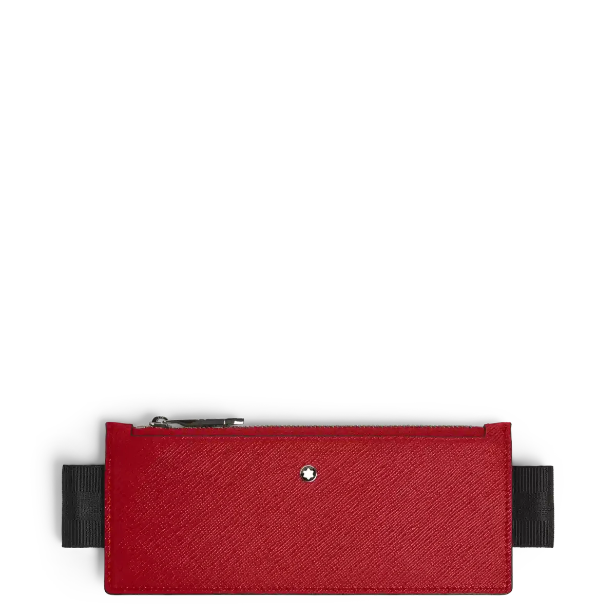 Denna pennfodral är tillverkad av präglat rött läder och är utformad för att rymma upp till två skrivinstrument, som passar Meisterstück Classique- eller LeGrand-storlekar. Den har en distinkt metalldragkedja i form av en pennspets och ett elastiskt band för extra bekvämlighet, och erbjuder ett elegant och praktiskt sätt att skydda och transportera dina favoritpennor.