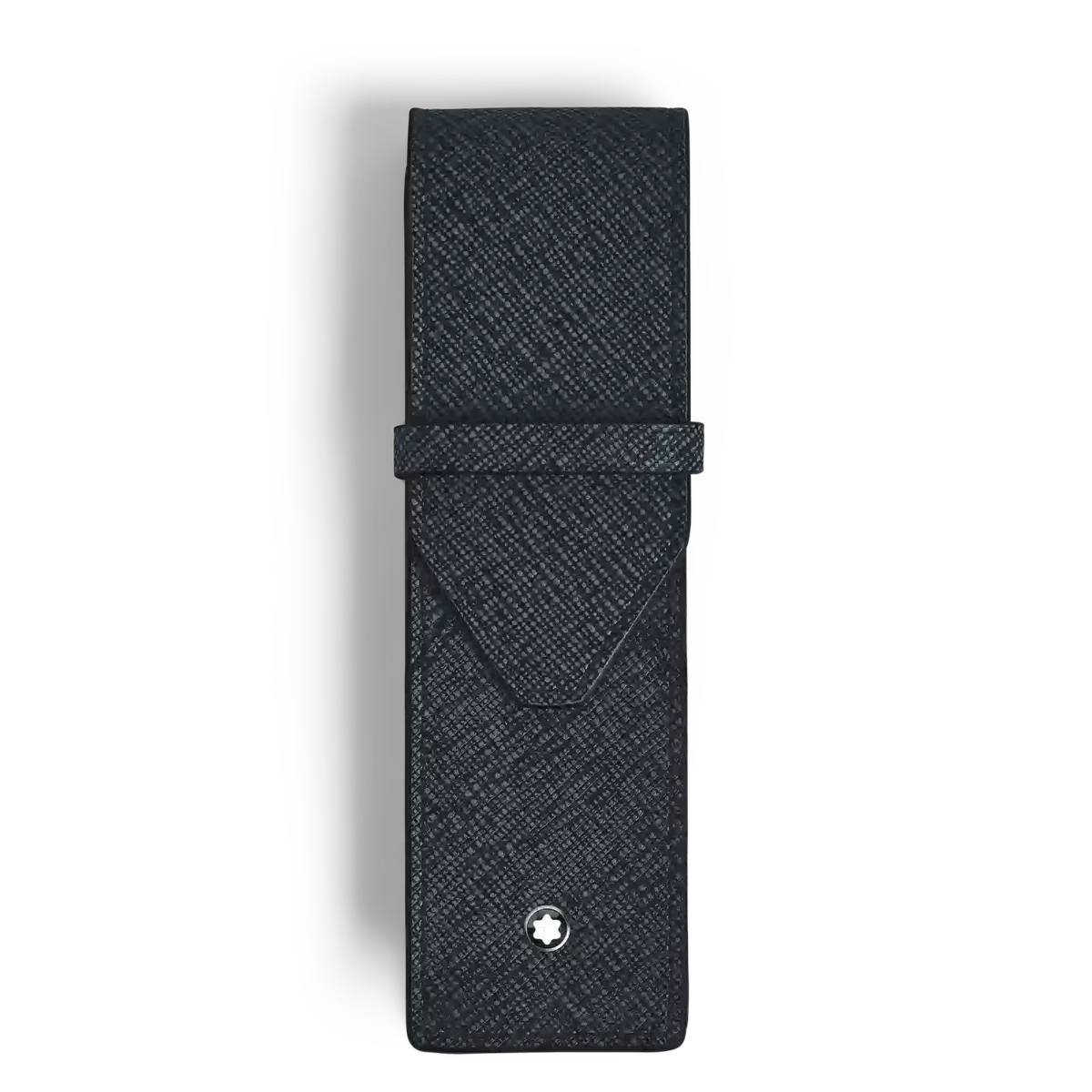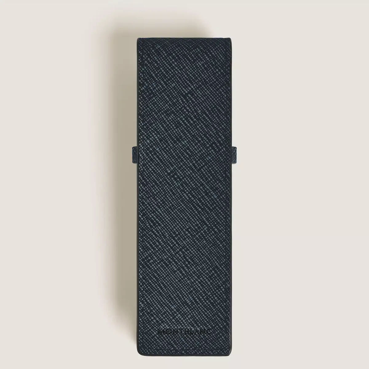 Denna pennfodral är ett elegant och raffinerat tillbehör som är utformat för att rymma upp till två skrivinstrument. Den är tillverkad av präglat sartorial-läder i en elegant tvåfärgad kombination av klassiskt blått och svart, och dess överlappande silhuett är inspirerad av formen på ett kuvert, som en hyllning till skrivkulturen.