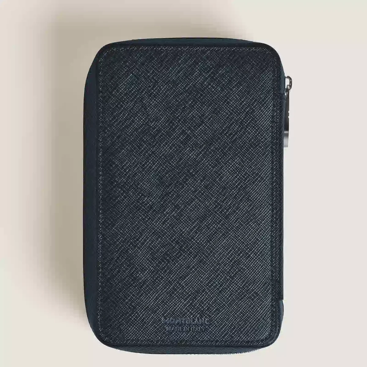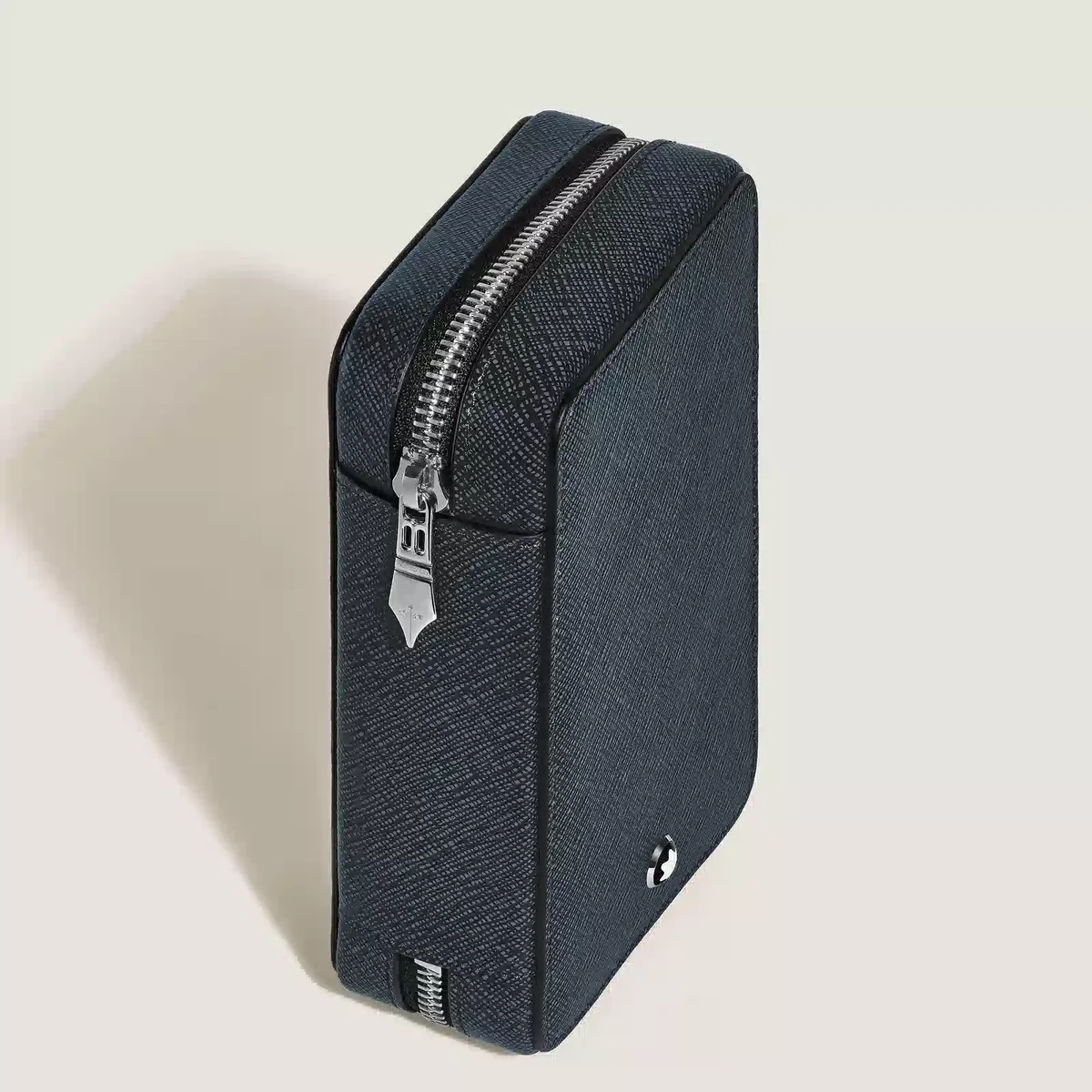 Denna pennfodral är tillverkad av tvåfärgat präglat sartorial-läder i blått och svart och är utformad för att rymma upp till åtta Meisterstück Classique- eller LeGrand-skrivinstrument, så att de hålls organiserade och säkra. Den har en distinkt metalldragkedja i form av en pennspets, som är en hyllning till Montblancs rika skrivarv. Den är perfekt för yrkesverksamma och skriventusiaster och kombinerar raffinerat hantverk med praktisk funktionalitet.