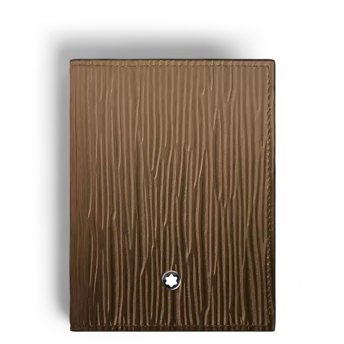 Denna sofistikerade korthållare är tillverkad av sandfärgat Corteccia-läder med präglat barkmönster och handapplicerad Sfumato-effekt. Den har ett fack för visitkort och plats för fyra kreditkort, vilket kombinerar praktisk funktion med elegans. Med Montblanc-emblemet på framsidan är den ett stilfullt och funktionellt tillbehör för daglig användning.